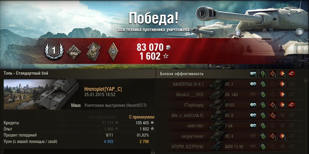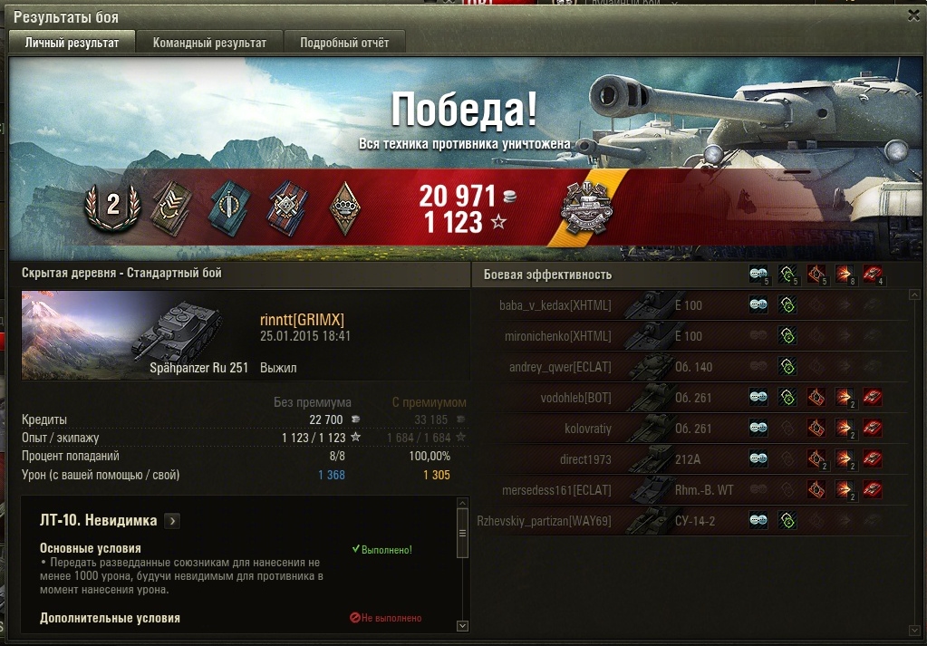 Допзадание не выполнил - абсолютно ненужную масксетку не взял. cry.gif А все равно приятный бой. biggrin.gif