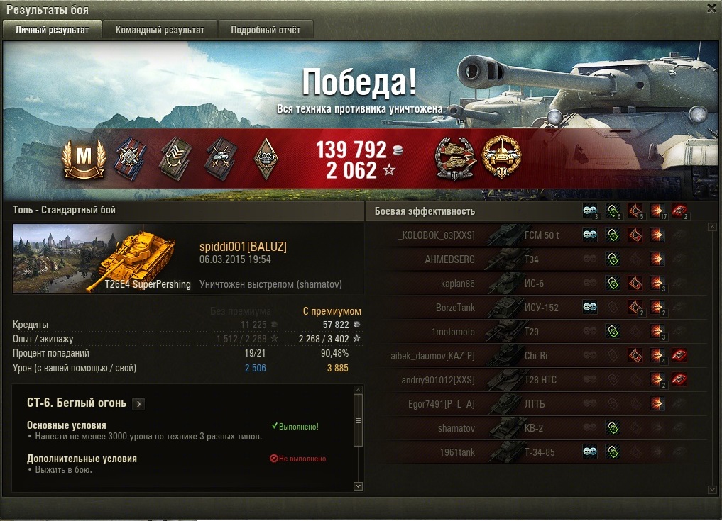 Один скрин, там и результаты за 5 боев, ну и лучший за сегодня..