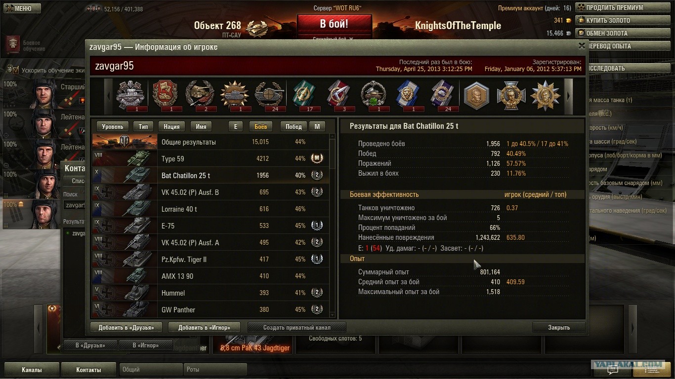 Кстати, кому интересно полная статистика по YAPL. Можно глянуть, кого сколько не было в игре, сколько медалек в клане, на чем играет народ в основном.