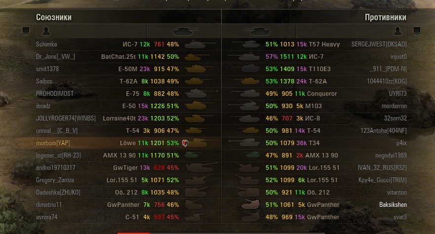 Это просто лютый пздц.Нахер такую игру.Карта вестфилд,у врага 3 СТшки(1 из них бат),у нас 1 СТшка(бат) и светляк(13 75).И что вы думаете?13 75 с криком "ололосвичу" дохнет на первой минуте,бат вообще поехал к тяжам в город бодаться и на весь фланг СТшек гордо стоит в кустах один объедок(как я материл нашего бата весь бой-надеюсь он хоть что-то поймёт).Итог-минус 2 СТшки врага(54 и 62а),но бат на то и бат-с катка я уже не слез и тихо помер.Бат допинывает нашего бата,который стоял целился в него стоя на месте,добирает наших тяжей и арту.У вражеского бата 8 фрагов,у нашего-0.Ну вот я решил посмотреть-чтож за бат то у нас такой был,что бросил фланг к куям и поехал бодаться с тяжами(при этом его дмг за бой-370).Я малость офигел,вот зачем ТАК играть?Ради удовольствия?Какое удовольствие в том,что тебя имеют как хотят и вся команда тебя проклинает?Не понимаю