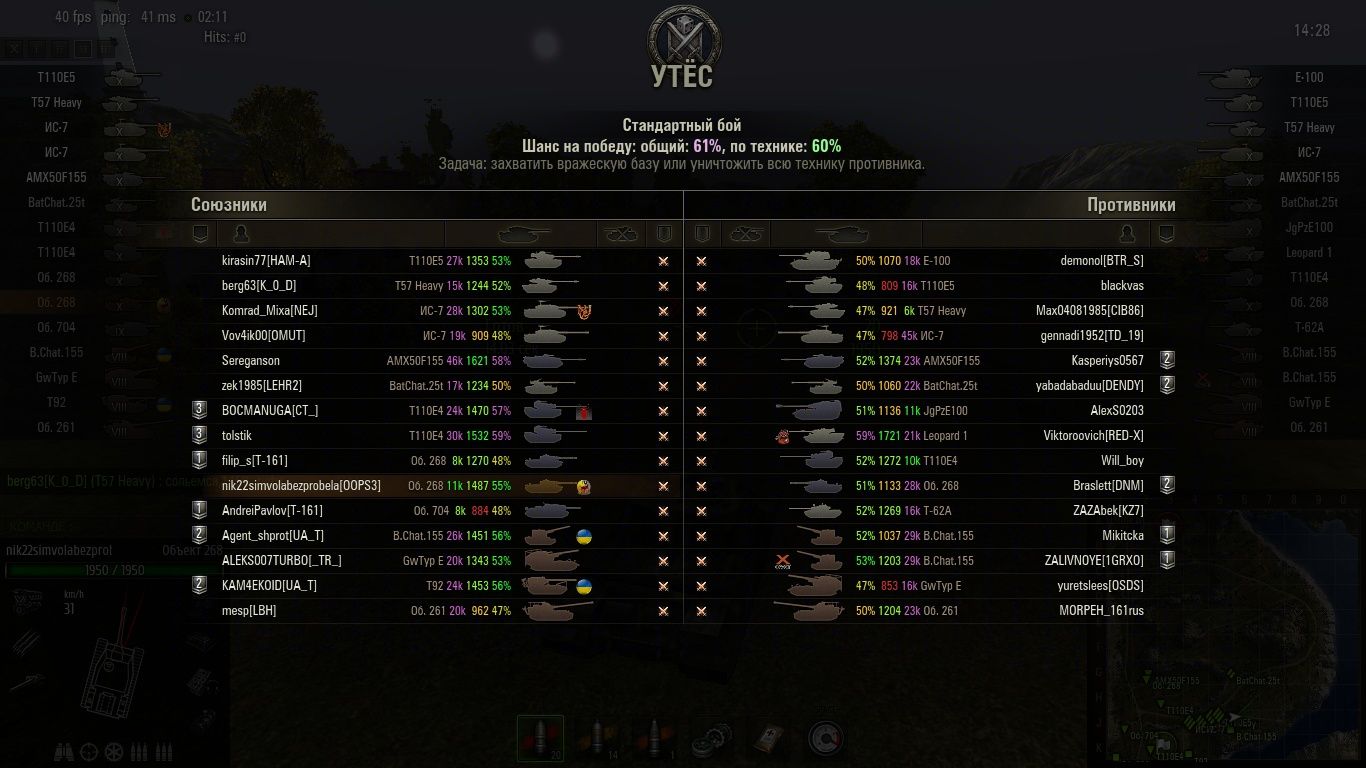Сегодня ж чистый рандом, можно стоять и тебя не пробьют а будешь плясать боеуклад взорвут, чтоб не дергался.