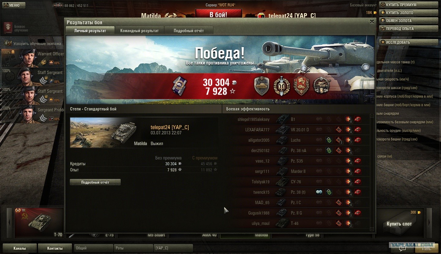Лучший мой бой на матильде, почти 8 тысяч опыта, без према! без голды! осталось 100% жизни smile.gif