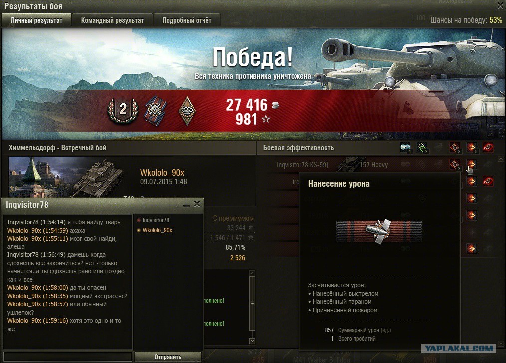Почитал тут про Мстива или как его?. А что можно ожидать от существа, с радугой в жопе??? Хрен с ним, по теме. Есть у меня кент, играть умеет,я видел. Стата: 27 к боев, 54-57% держит (это же не показатель правда жи biggrin.gif). Предпочитает СТ, но и не гнушается другой техникой от 8+lvl.Пиздим по телефону, он собирается играть в танге. Я говорю, слушай, тут у меня две недели сливов. А ну-ка погоняй ты на моем акке! Посмотрим. Дал ему "реквизиты". Блядь, через час он мне звонит: "Выкинь нахуй свой аккаунт shum_lol.gif Ссука, всего 1 победа! Пузырь должен за поломанную психику!" Вот те и прямые руки, ВБР сказали слив, значит слив. И ваще, с завтрашнего дня я в отпуске rulez.gif