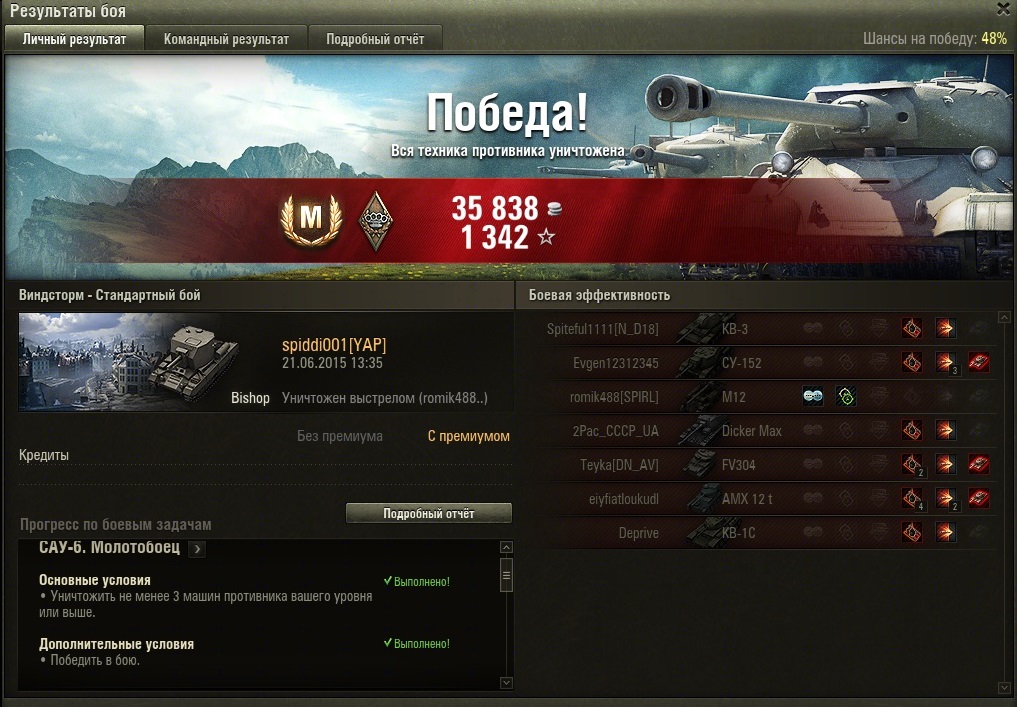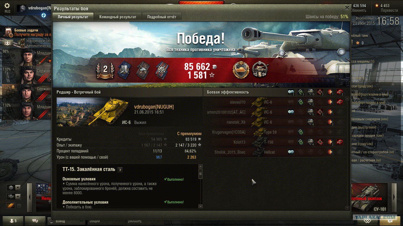 Кажется я понял,как играть на ис-6,все-таки это ахуенный танк ребята, скажу я Вам,за сегодня только 5 стальных стен,хотя на медальки эти мне вообще похуй,ну и тт-15 на 28 концепта на нем сегодня сделал!!!Да и я бы его себе взял,но только в качестве подарка!