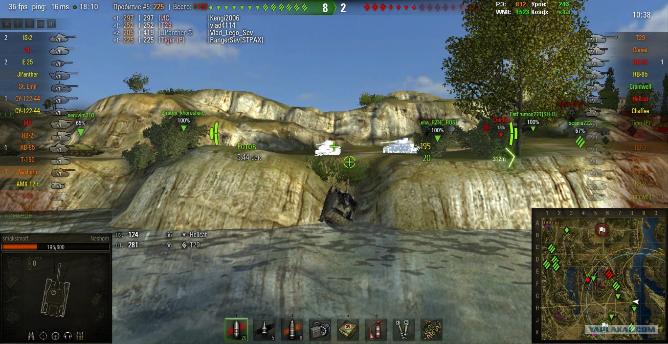 Кстати, предупреждаю: в новом патче можно застрять на машинках. Сначала я застрял на е-25, но думаю там просто танк низкий, а потом я застрял на Ис-6. Тупо наехал на машинку, раздавил ее и не могу проехать: пришлось сдавать назад и объезжать. Спасибо картошка за кучу бесполезного говна на карте