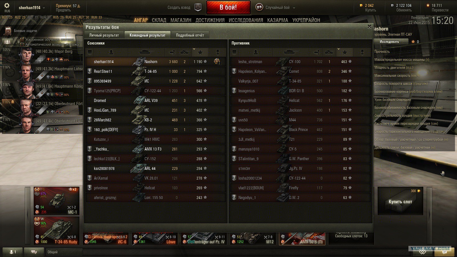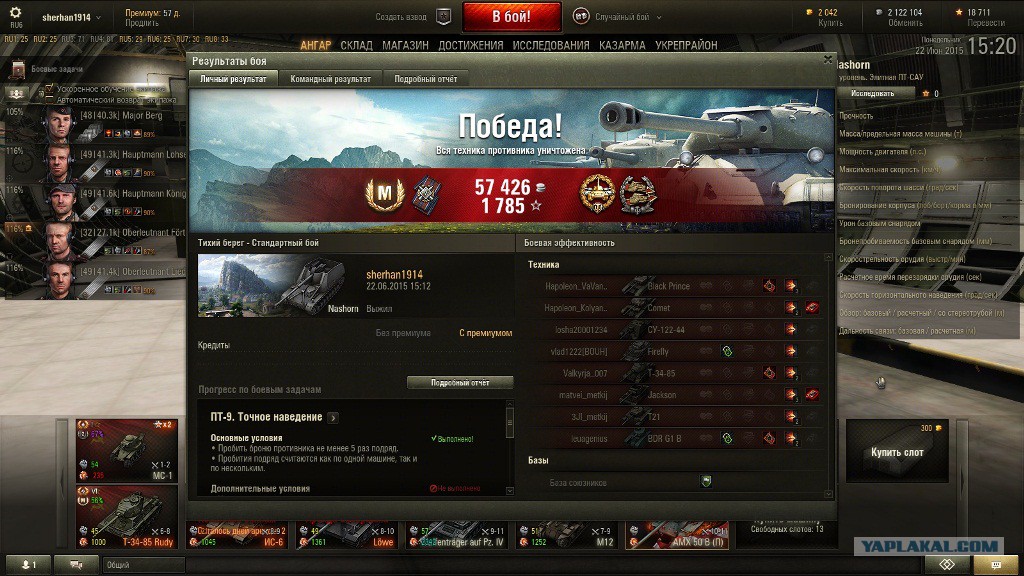 Мне пох, кто там и что собирается смотреть, я катаюсь и кайфую, дамажку поднял до 2к, стабильно заблокировано 2к, першинг голдой не пробивал, ис6 голдой берет не уверенно, ни один танк мне такого не давал, прям слезать не охота, только на нем и катаю. А остальные пускай думают, чем их меньше, тем лучше. rulez.gif