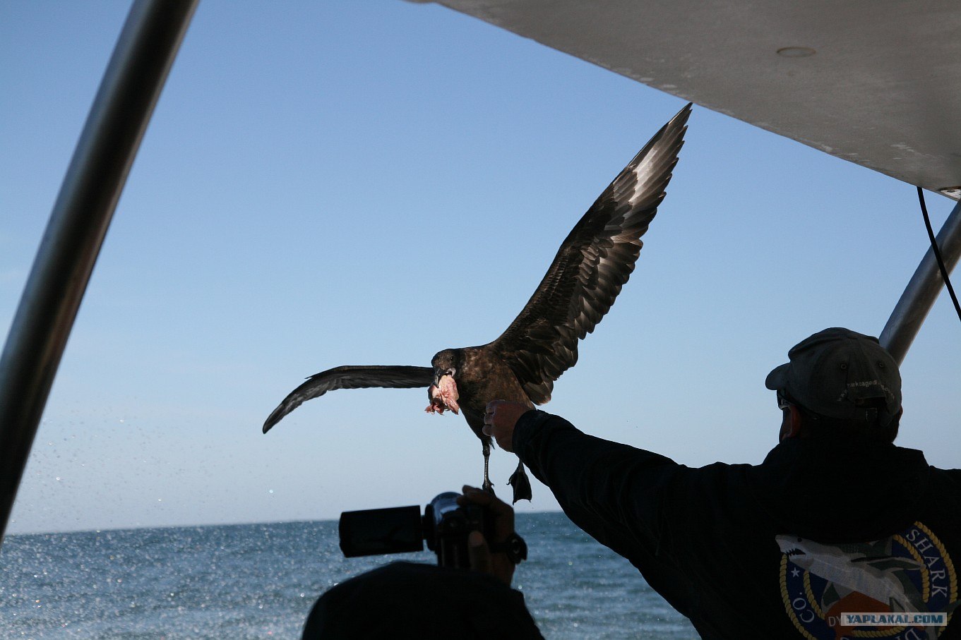 Ощущения от того что мимо тебя проплывает самый совершенный убийца и охотник передать нельзя, это нужно прочувствовать. По крайней мере, то что вода холодная и костюм протекает я забыл напрочь. А если еще и вспомнить, что наш капитан прозевал приманку и вовремя не выдернул голову тунца из воды , чем акула незамедлительно и воспользовалась. Набрав скорость и ухватив добычу, с бешеной скоростью врезалась в клеть. Причем счастливцем, в которого она ткнулась носом конечно был я! После того как я вылез, на меня смотрели, как вернувшегося с того свет!)))
