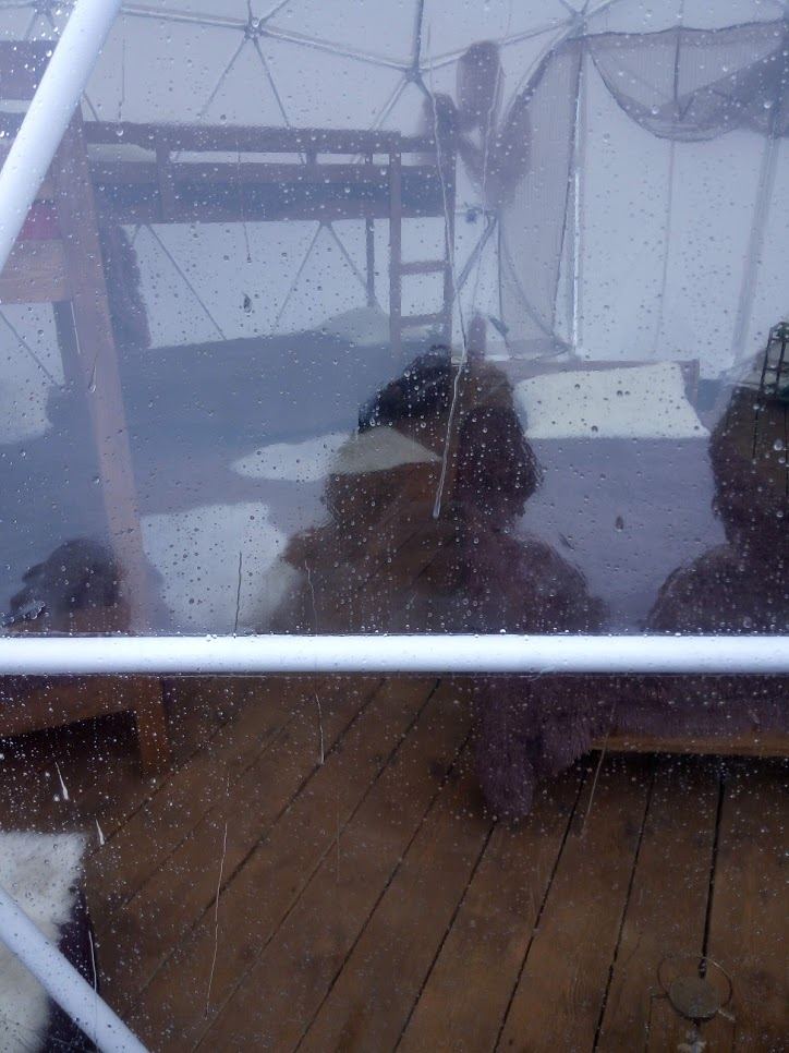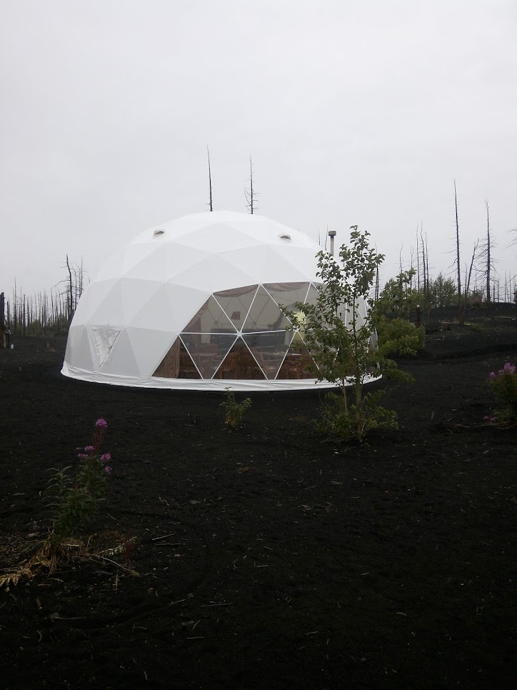 Помните рекламу "и даже забронировать пузырь". Рядом с мертвым лесом есть вот такие пузыри. Там номера, кровати, снять можно. Именно этот что-то типа столовой) Медведей там, кстати нет. Им там нечего есть. Внутри поставили усилитель сотового сигнала, и там берет связь))) Можно фотки постить не уходя с вулкана )))
