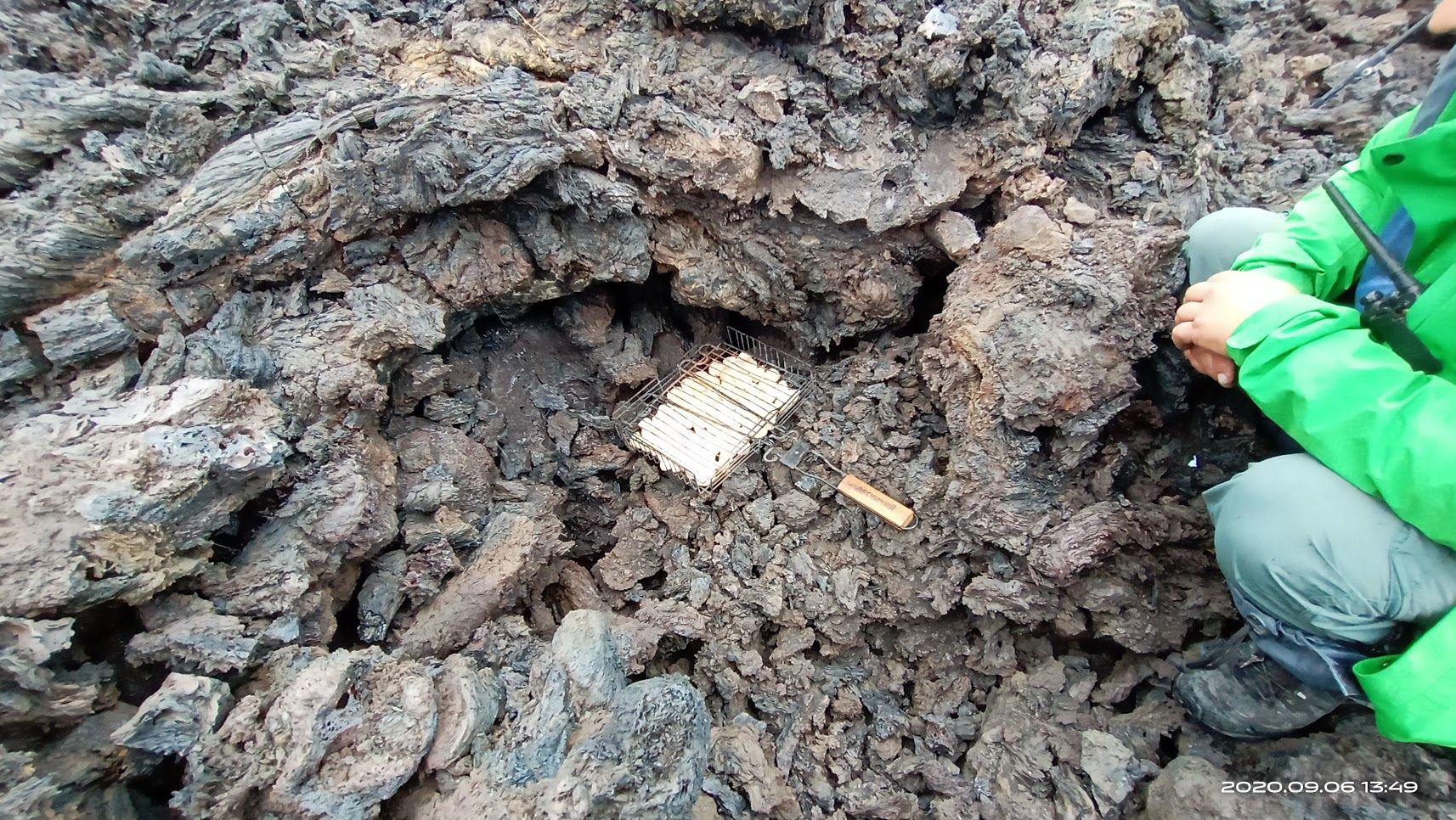 А вот мы вышли из той пещеры и пожарили сосиски на лаве)