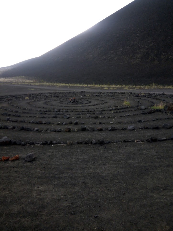 Спираль. По легенде надо загадать желание, взять подношение к "Богам", камень и идти по спирали, дойдя до центра, положить подношение и идти обратно, выйдя со спирали положить камень, как продолжение спирали. Поглядите на фото у ТС где уже кончается спираль )) Подношение обычно, кто, что - конфеты, монеты, бумажные деньги, как-то раз насчитал там около полутора тысячи рублей.))