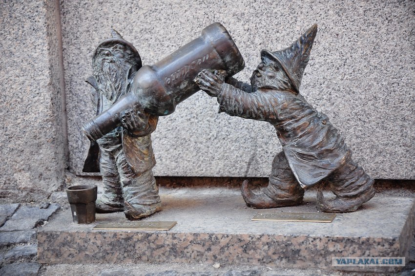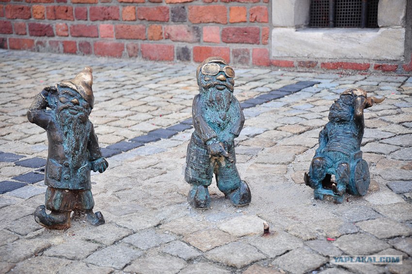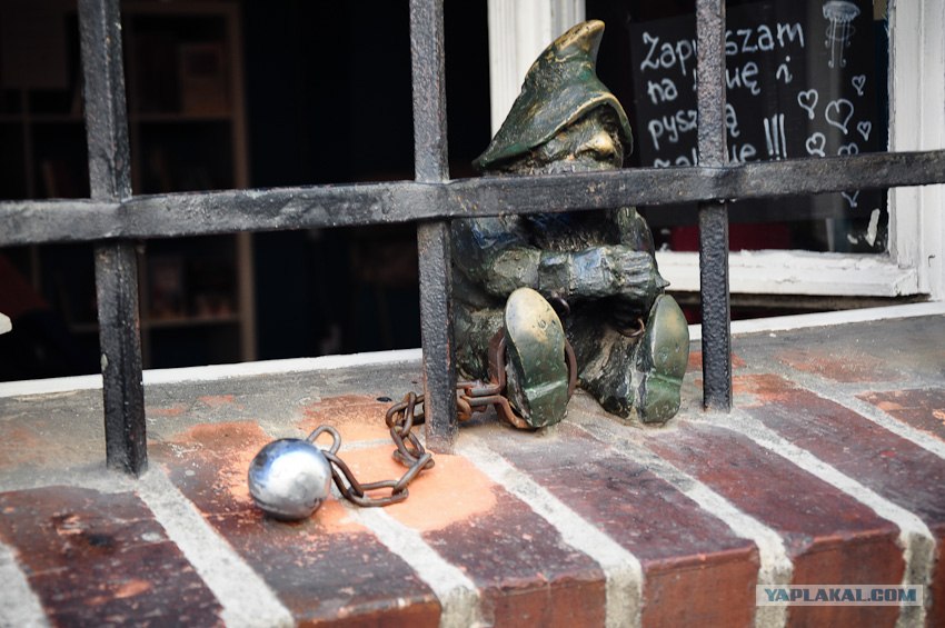 91. Привезли нас после ночёвки во Вроцлав, город славится своими гномами, которых много-много на улицах, самых разных. Такой вот гномик в цилиндре и с какой-то гирькой