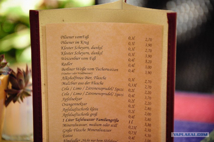 86. Наконец-то у нас появилось свободное время и мы пошли искать ресторан....как же быть в центре Баварии и не попробовать баварского пива...нашли, приземлились, выбрали. Вот менюшка с ценами. Мы брали Weizenbier