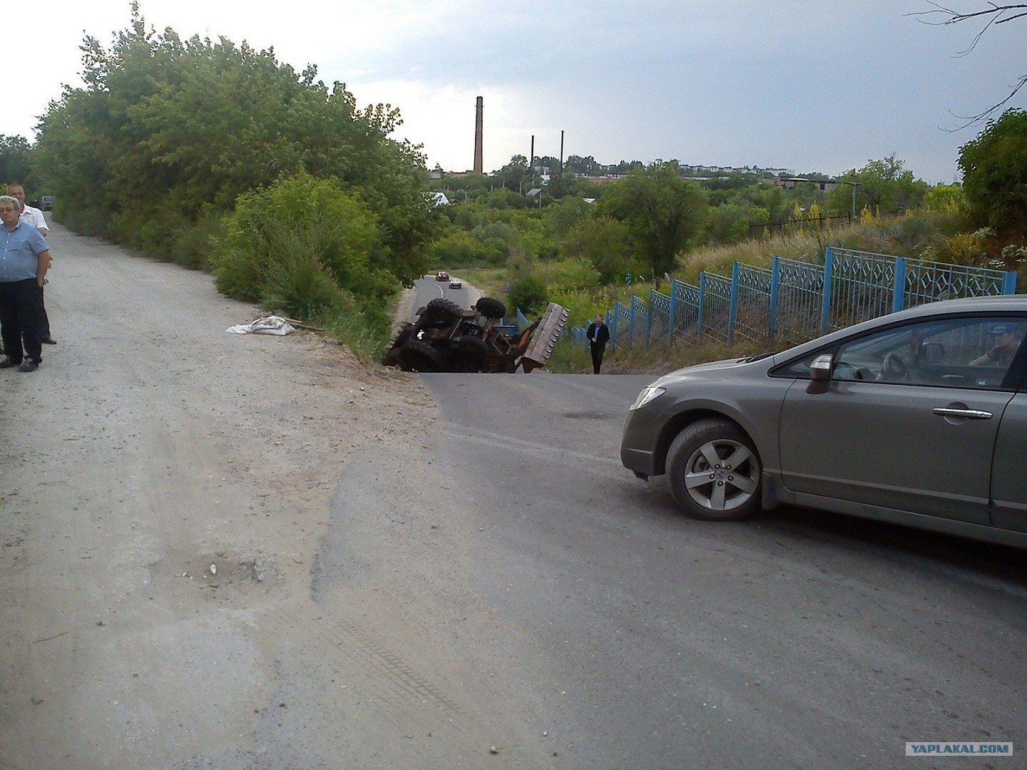 Сегодня, пол-седьмого вечера, нам преградил дорогу трактор. Пришлось разворачиваться и давать лишний крюк - примерно 10 км.