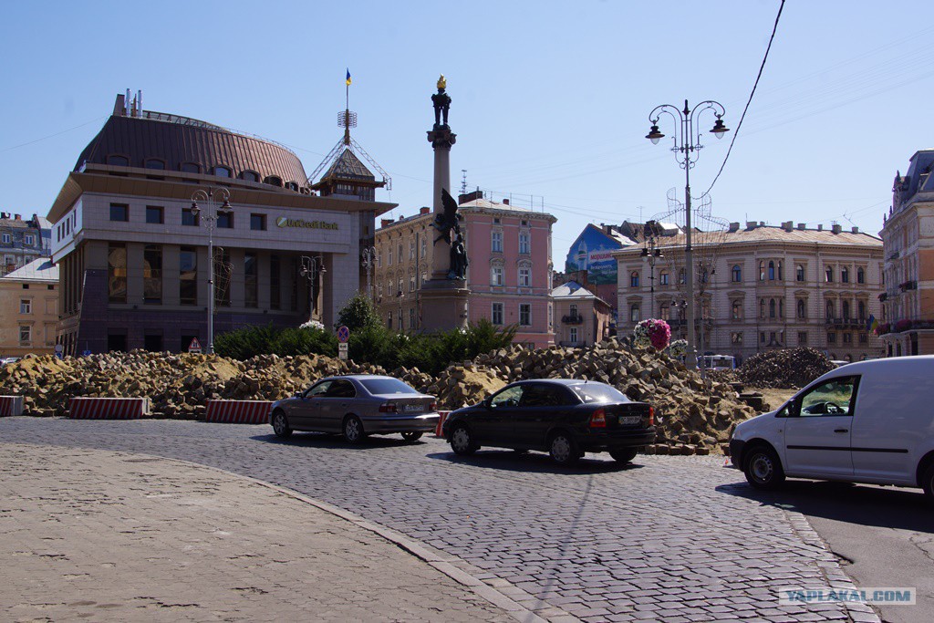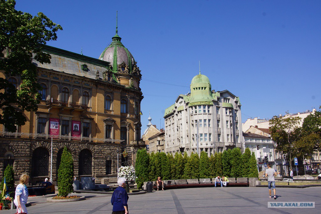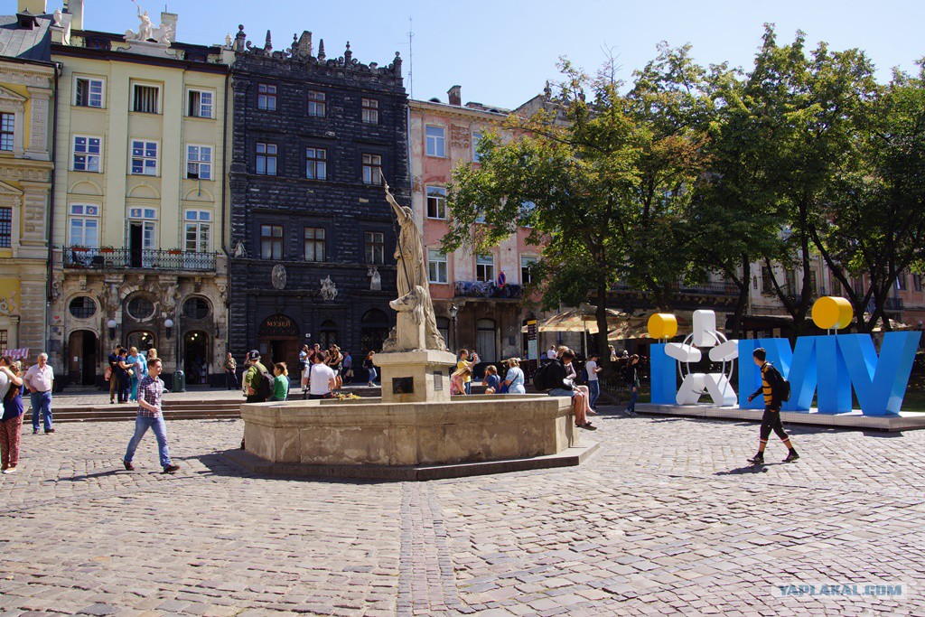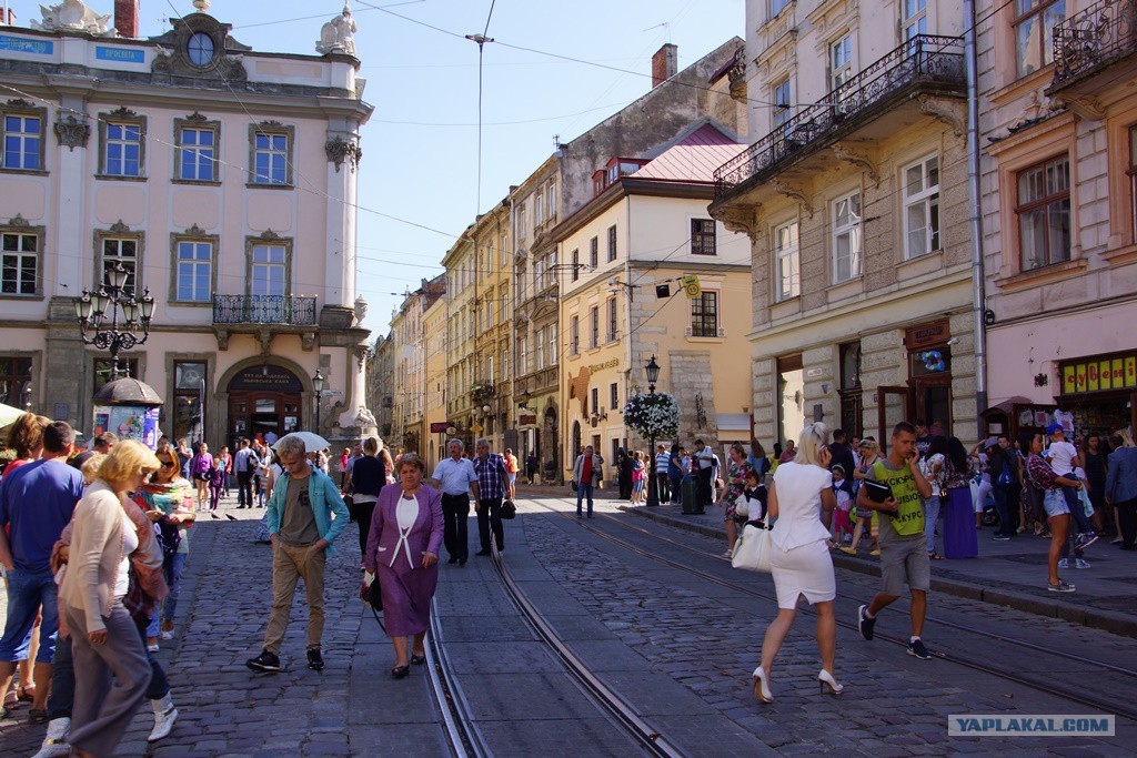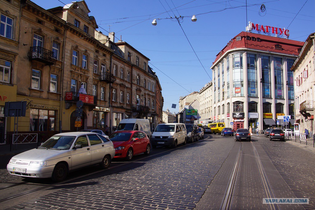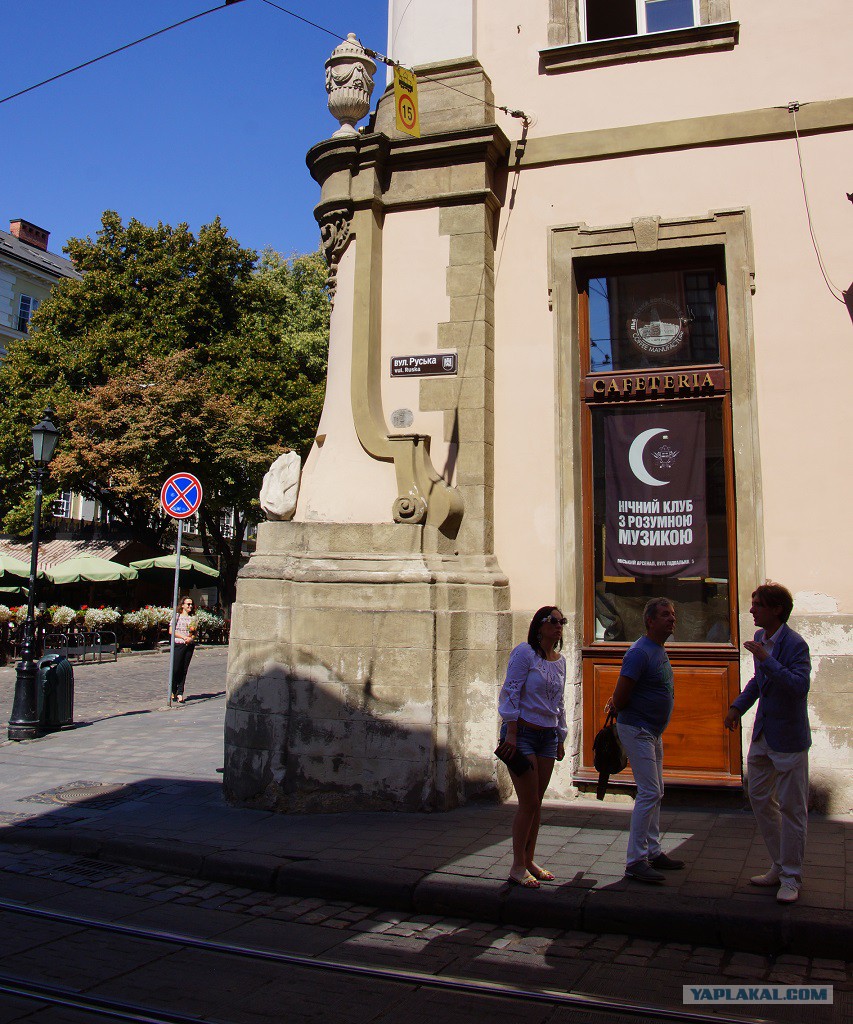 Трое туристов разговаривали с двумя канадскими (!!!) полицейскими патрулирующими (!!!) улицы Львова! Пока я достал фотоаппарат они уже начали расходиться, «щелкнуть» удалось только одного.
