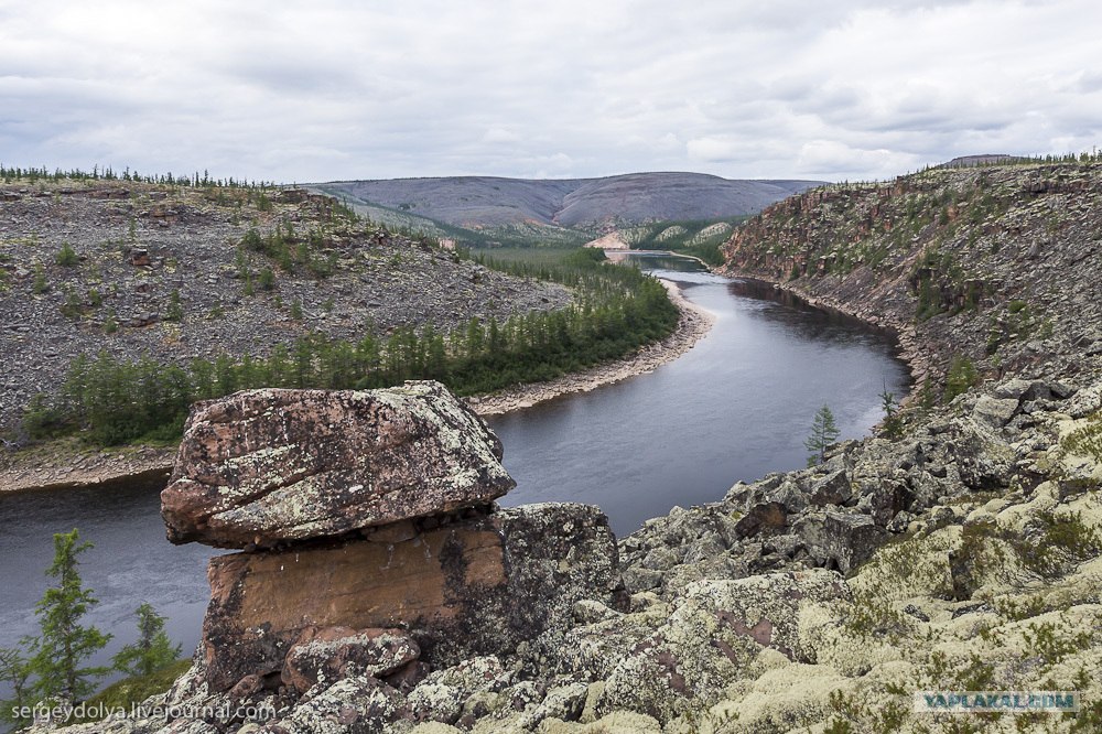 Мы прилетели на Котуйкан в районе 5-6 часов вечера и весь следующий день стояли лагерем. Мы потратили этот день на вылазки и изучение местности и "каменных стражей" - огромных валунов, которые стоят на берегу и смотрят на Котуйкан. Ну и, конечно, нетронутые просторы Таймыра...