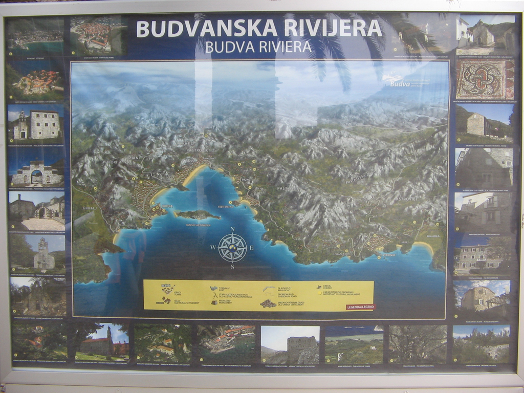 Карта будванской ривьеры около старого города, примерно 60% этого побережья мы успели пройти пешком с купанием на каждом из пляжей.