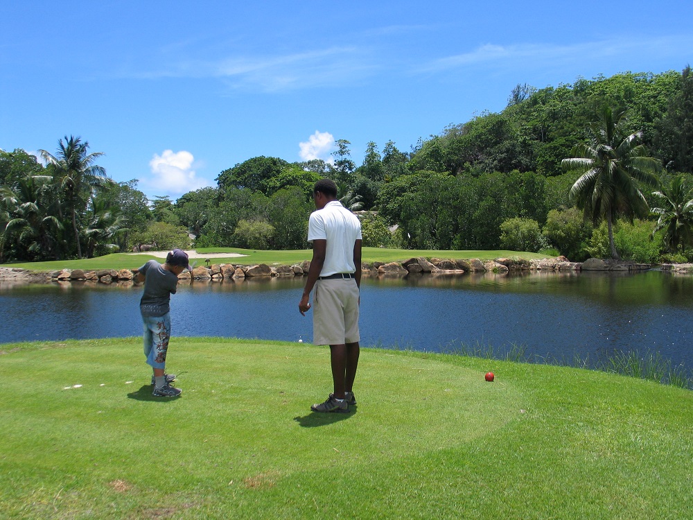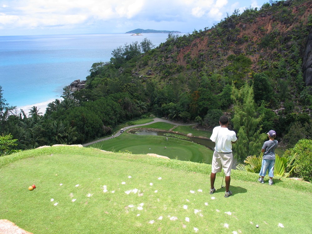 Вот в ту лунку внизу надо попасть. Расстояние более 200 метров.