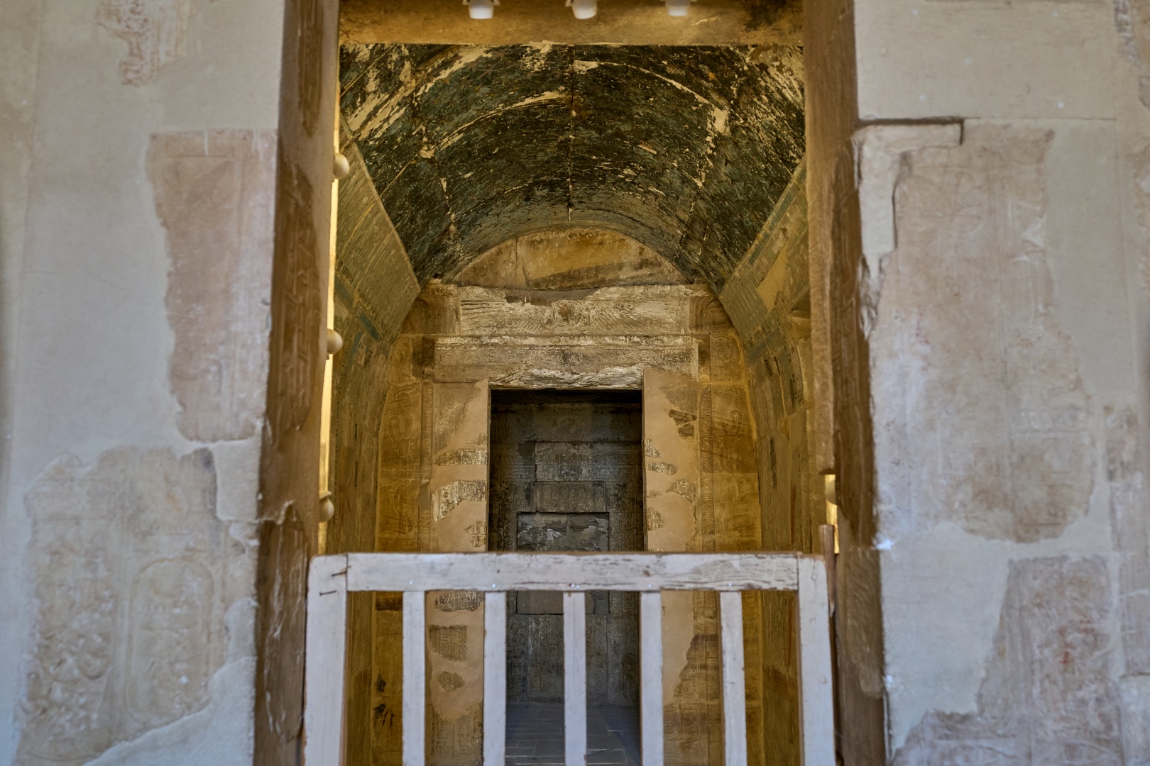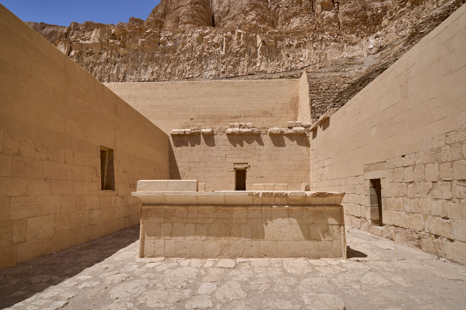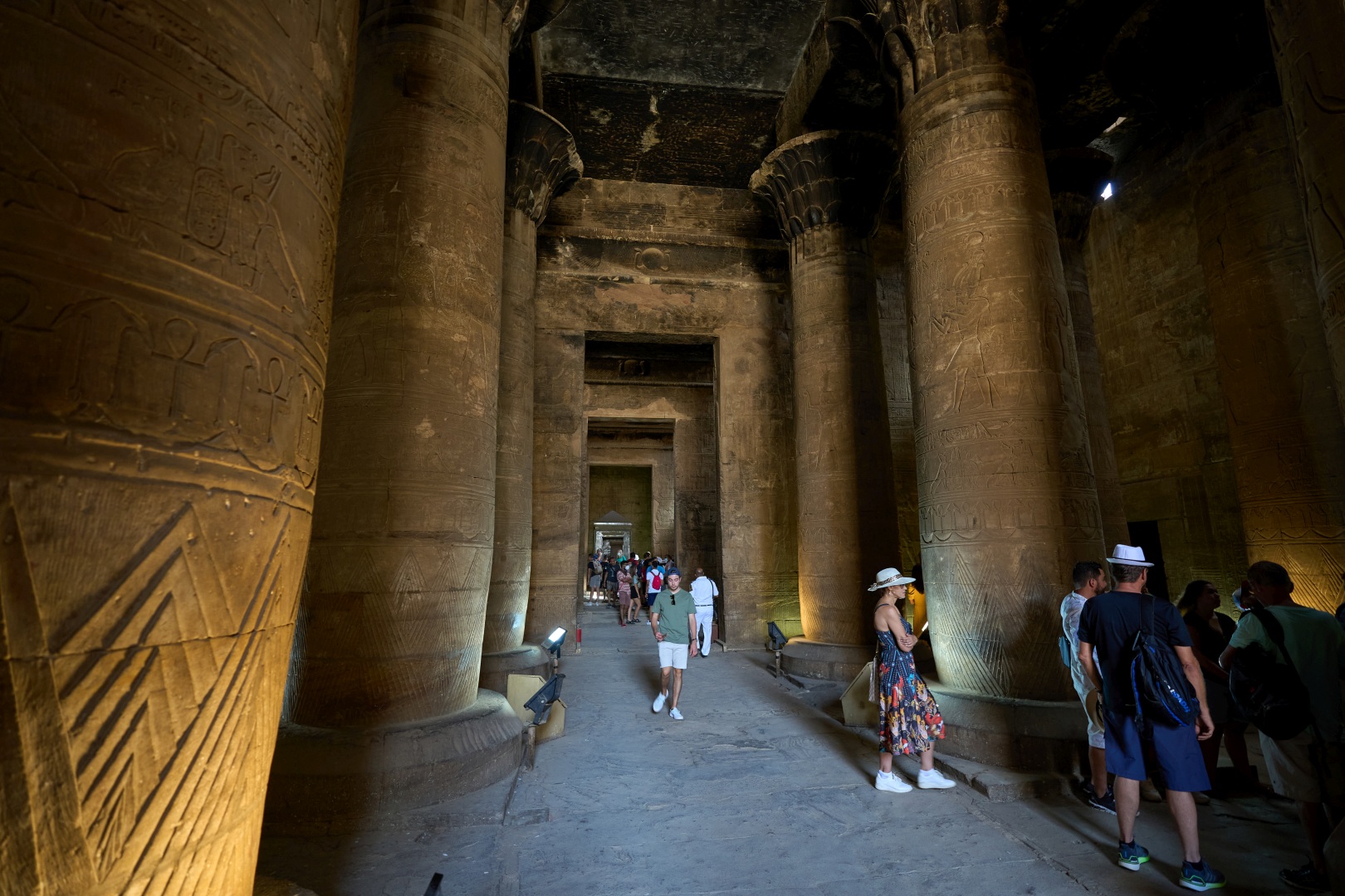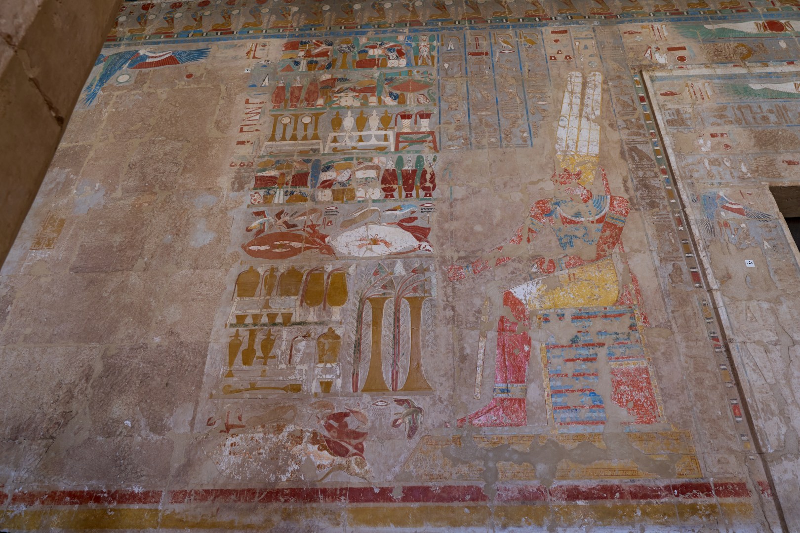 На пилоне можно видеть изображения Птоломея XII (правил в 80 — 51 годах до н. э.) казнящего своих врагов перед Гором.