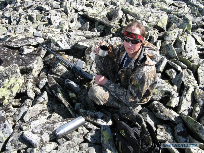 Вот мы были на Южном Урале, и там встретили такого дядьку со стволом. Сначала издалека пообщались потом поближе.