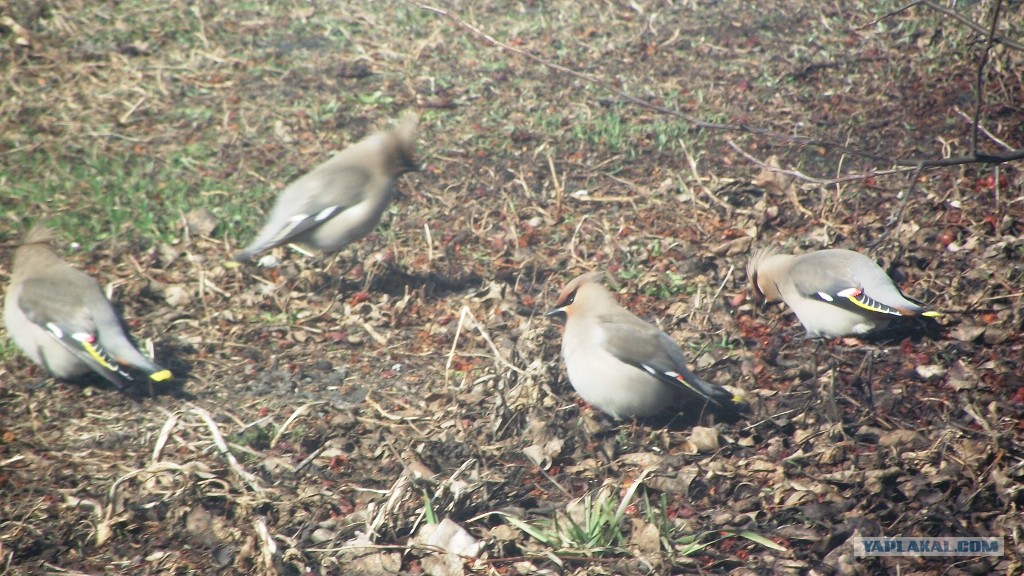 Эта птица, смогла и сардельку прикончить. Третью её часть.
