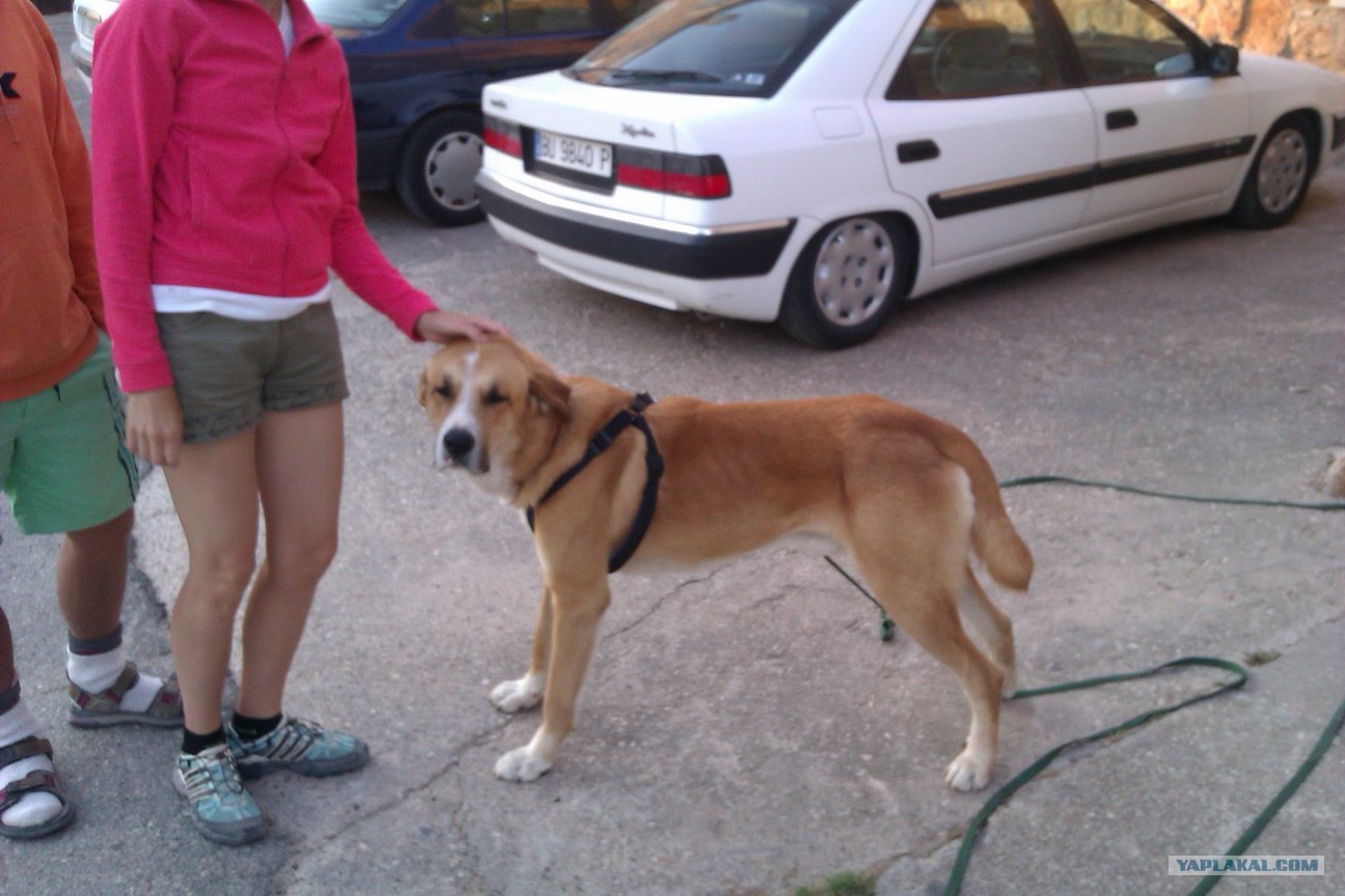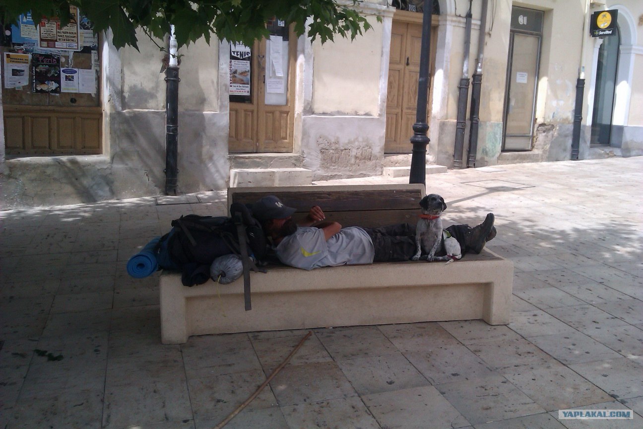 Вот это тот красавец, чьи хозяева из солидарности весь путь спят с ним на улице... ибо с собаками в альберге не пускают...
