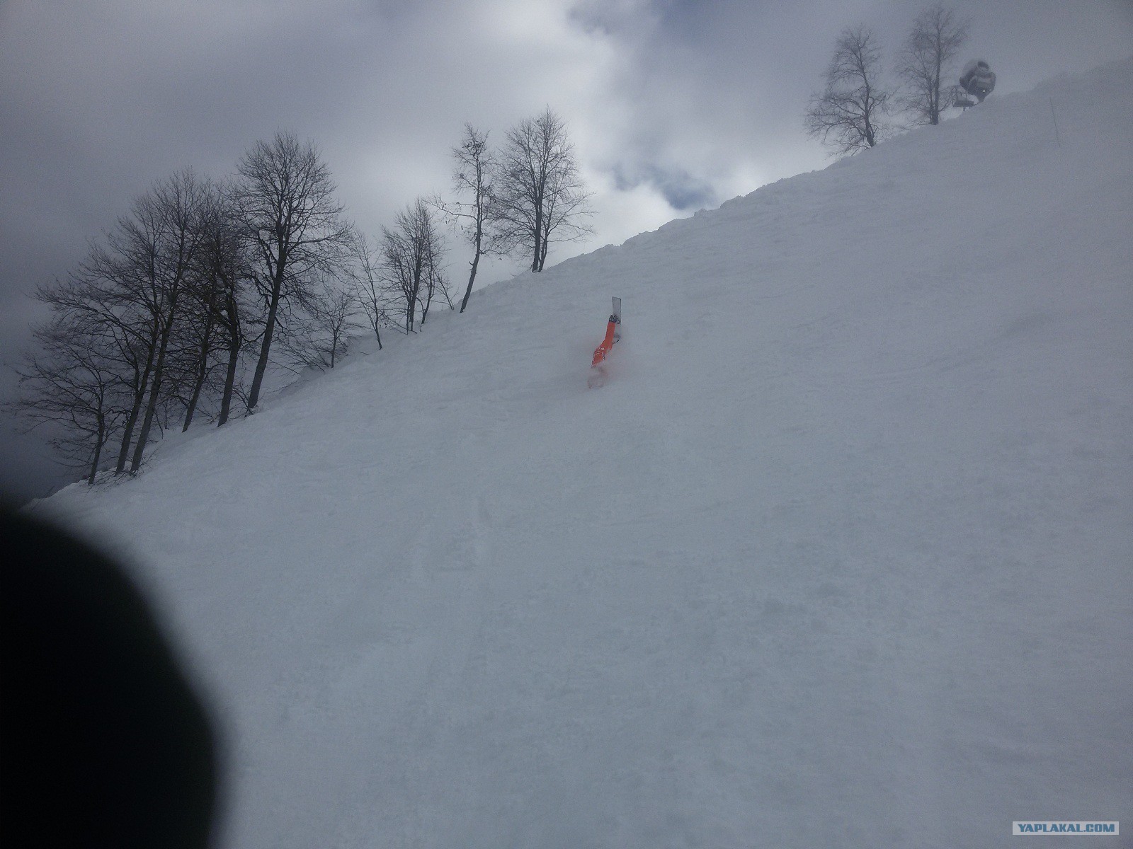 26. В случайный кадр попал лихой сноубордист спускающийся, видимо против своей воли, на голове…