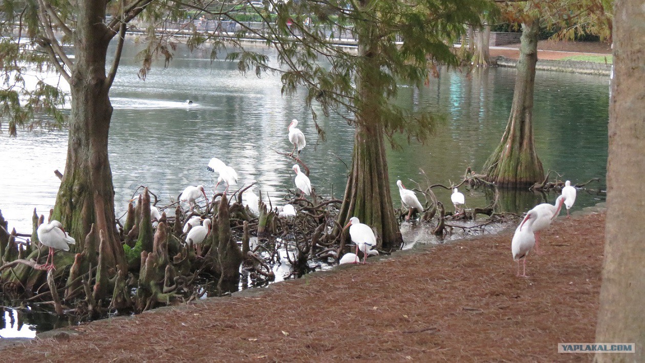 Кстати в парке играет рождественская музыка создающая необходимую атмосферу Нового Года.Живность живёт своей жизнью и до людей ей нет дела.