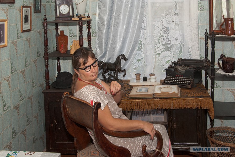 Можно не только посидеть на экспонатах, но и померять очки хозяина, полистать его фотоальбом
