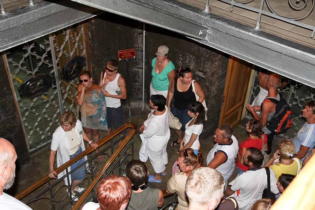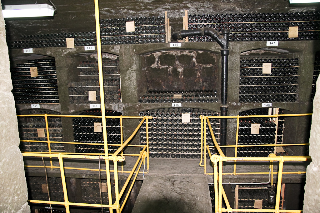 Наконец-то повели в подвал. Во время оккупации фашистами вход в подвал замуровали, так сохранили винотеку.