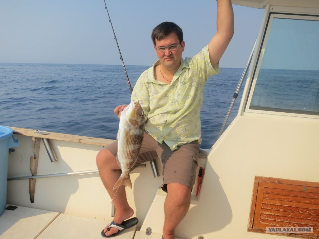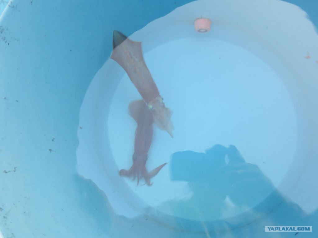 Сначала ловили кальмаров на наживку, потом в море зубаток. Итог - оборвали две лески, выдерживающие 70 кг и 30 кг, поймал одну маленькую зубатку на 1,7 кг, которую в обед умял с женой (нам ее приготовили на заказ в кафе).
