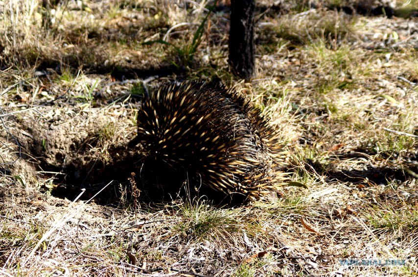 Это Ехидна - типа нашего ежика, только большая. Мы её пытались взять в руки (в перчатках) - но она как то вся подобралась так, ощетинилась иголками.... вобщем я просто сфоткал и оставили ее в покое.