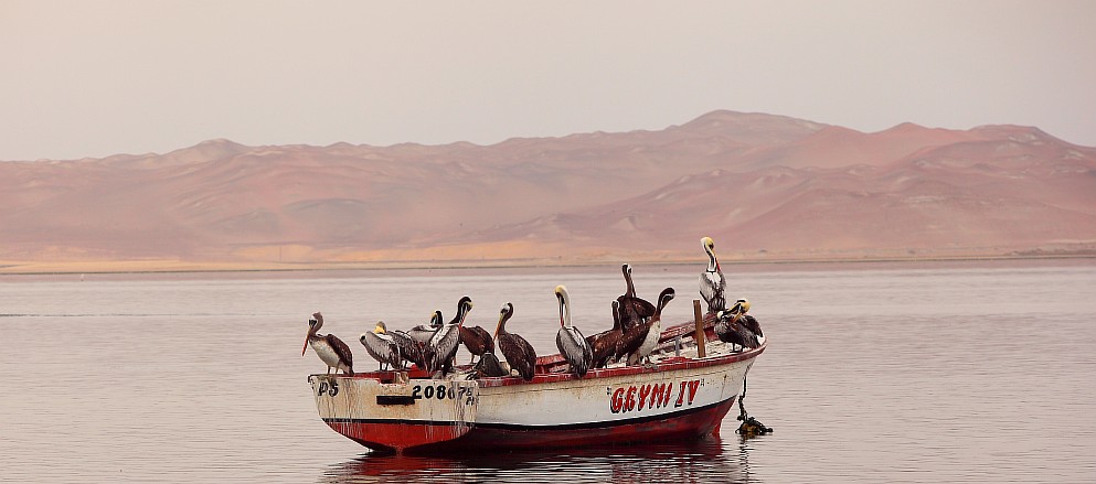 Ну что же... о тяготах трех часового переезда в Паркас рассказывать не буду. Сразу к делу. По приезду, нас дружненько повели к лодке, одели жилеты и читали технику безопасности, я в это время фотографировал пеликанов!