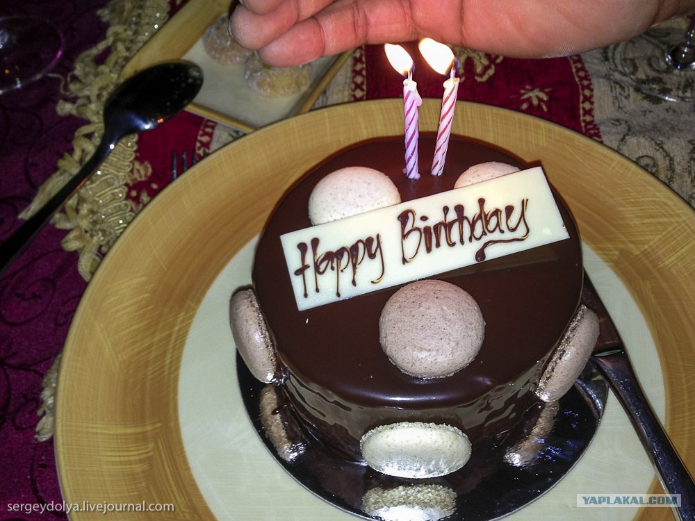 Для нас исполнили Happy Birthday и угостили тортом, который мы после предыдущего испытания высокой кухней не смогли даже попробовать и спрятали в холодильник: