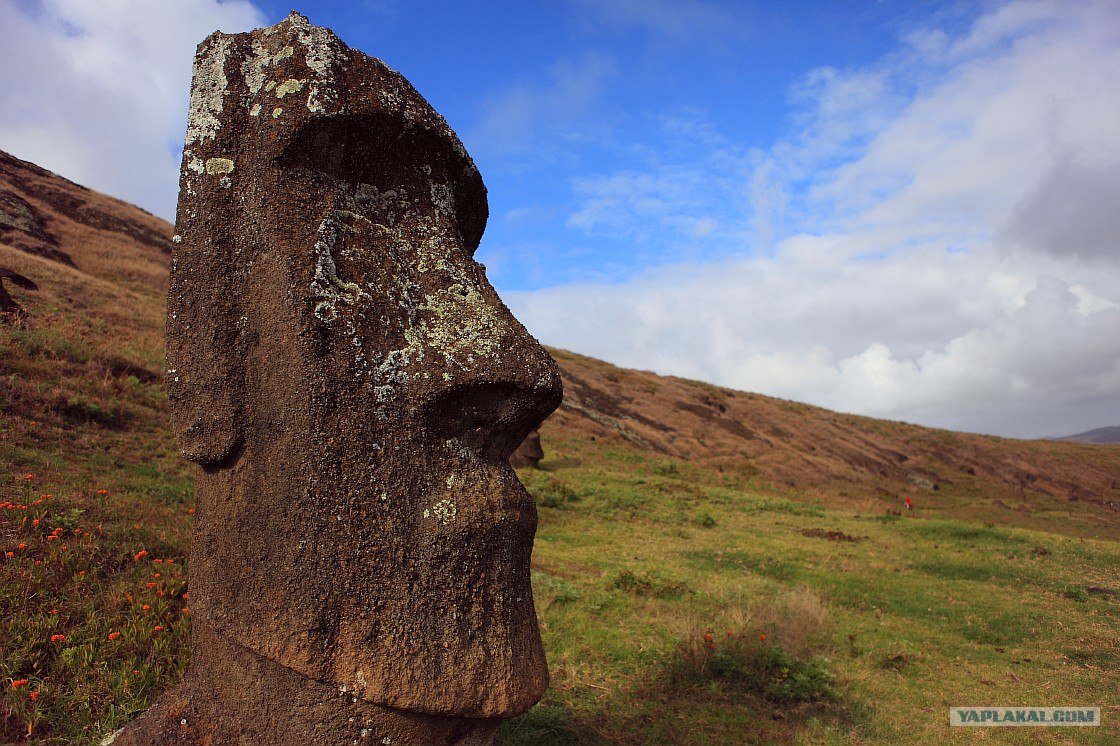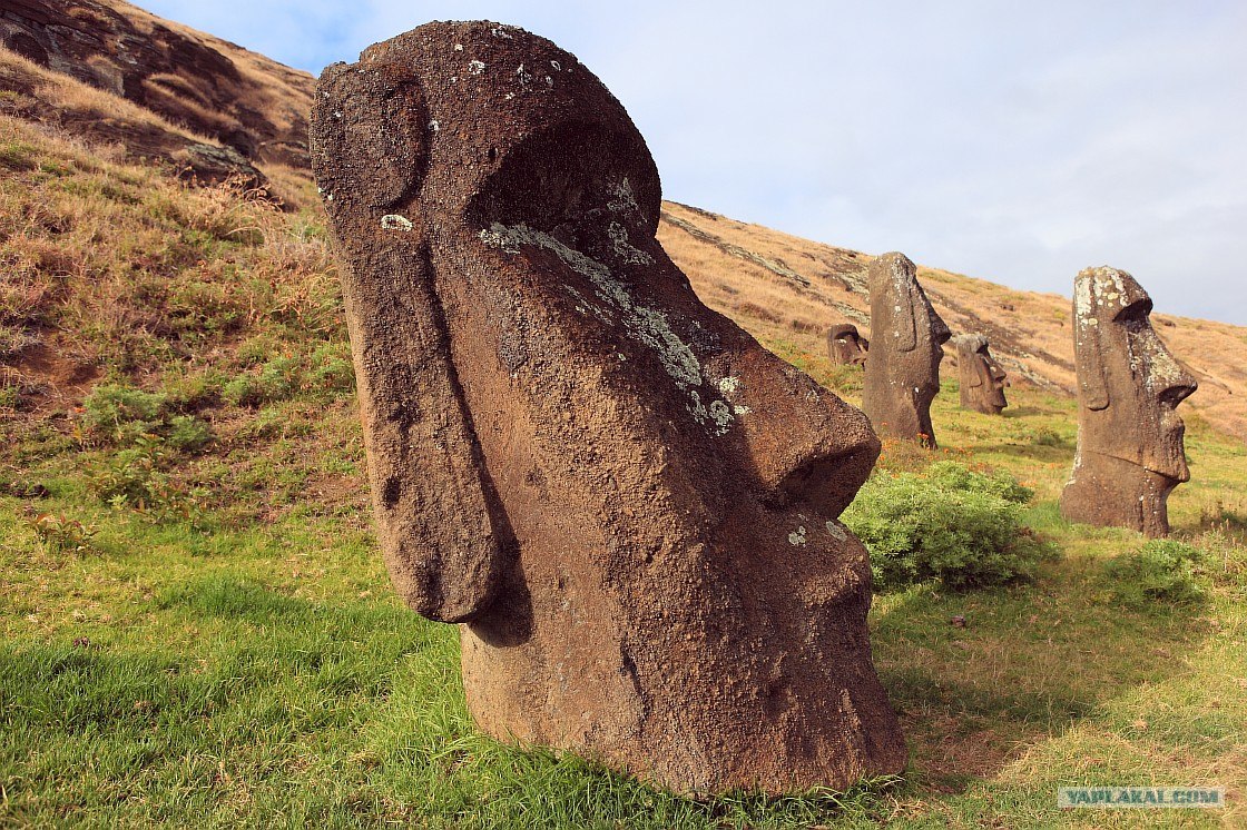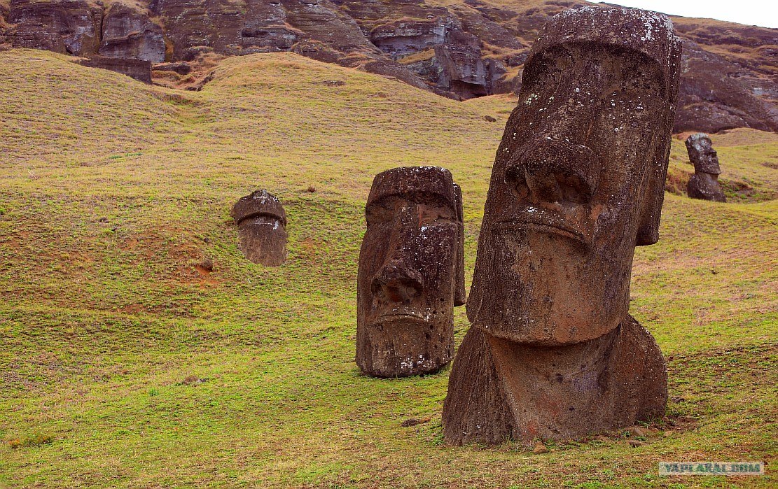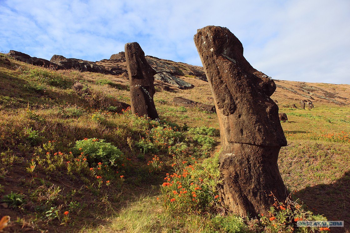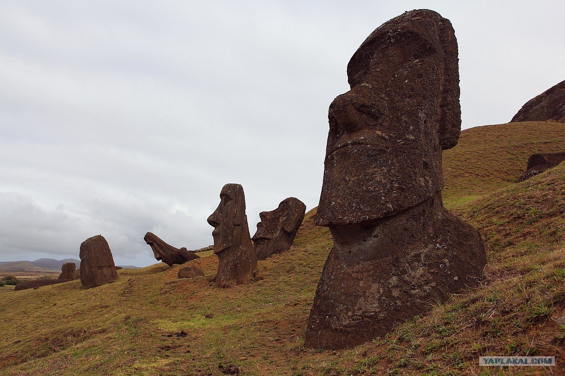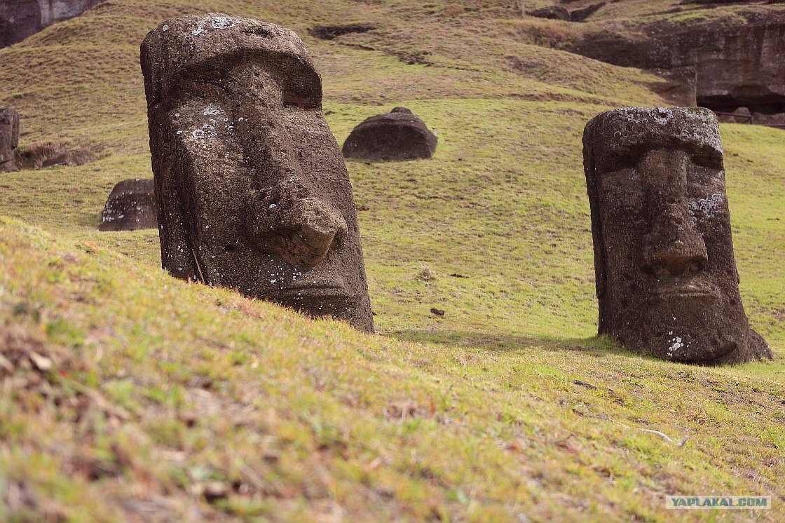 Вот эти стоят внутри кратера вулкана Рано-Роратка. Место я вам скажу просто нереально красивое, да еще утром когда нет людей. Вот в чем прелесть отвязки от группы и прочей стадной лабуды. ЛЮДИ, учите языки и путешествуйте сами)