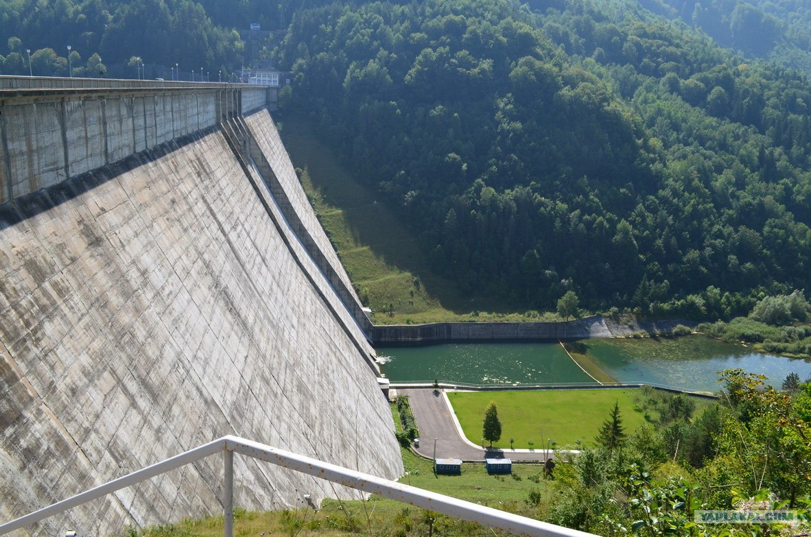 Чтобы понимать масштаб строения: по дамбе сверху едет фура 20-тонник