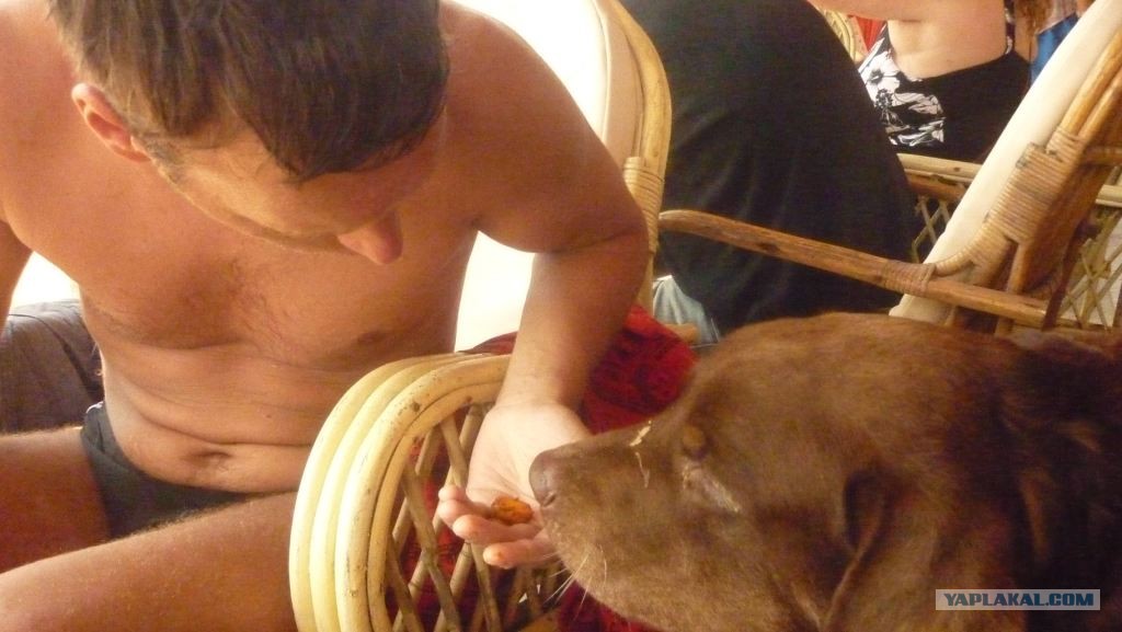 А ещё в шейке был здоровенный пёс, который как раз и съел суперострую картошку, и ещё он с бутылкой играл, то нам её притащит чтоб кинули, то бармену. Пёс, кстати, очень старый и седой, но игривый как щенок.