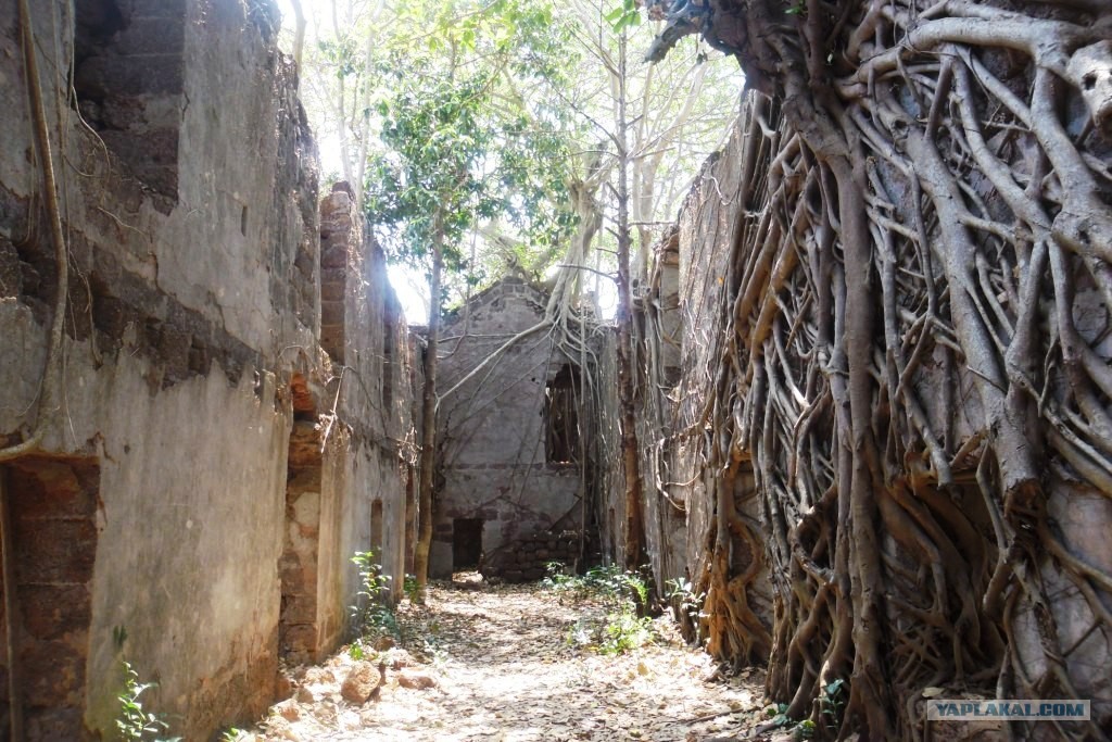 После парома ничто не предвещало беды, но неожиданно на дороге оказался полицейский пост. Повезло что гайцы в Индии ленивые и полицай даже не встал из кресла, а только свистел в свисток и махал мне, чтоб я, мол, не проезжал мимо. Было, конечно, на подсознательном уровне желание остановиться и показать ему свои поддельные права, но я знал что если есть возможность свалить, лучше свалить, никто за тобой не погонится. Форт Реди, который находится в одноимённой деревне, нас поразил, весь заросший джунглями, и мне кажется, если бы не деревья, то его стены бы уже давно разрушились.