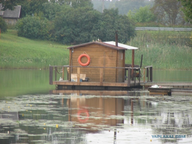 (Скорее всего, баня, довольно-таки популярная тема в Эстонии- бани на плаву, хотя эта и не похожа, что сама по себе по озеру катается. По мне так удобно и весело)