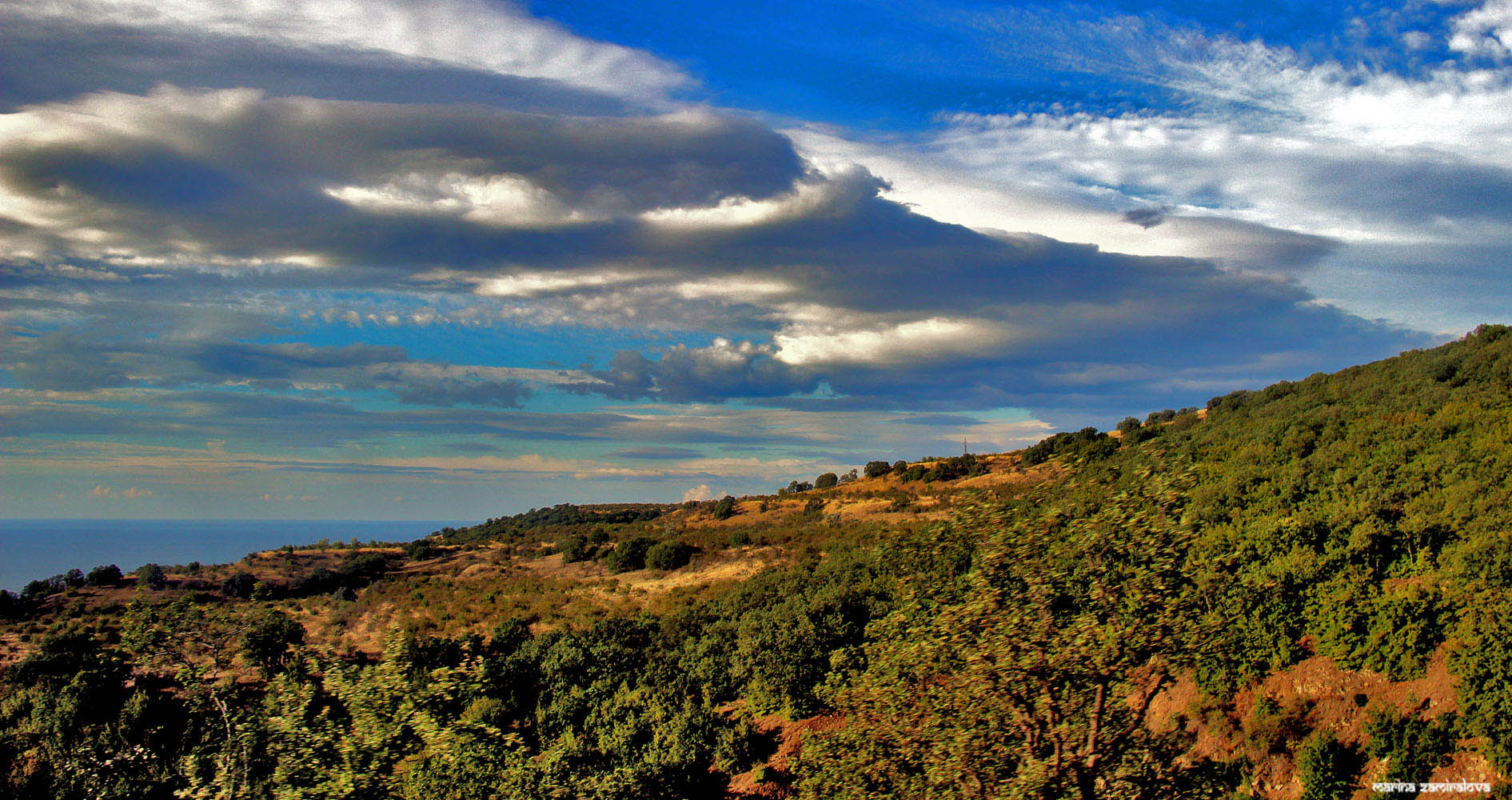 Отъезд в шесть утра был кошмарен, рассчитывала выспаться в автобусе - не вышло. Едем... Ехать далеко, за Ялту. Проехали Демерджи...
