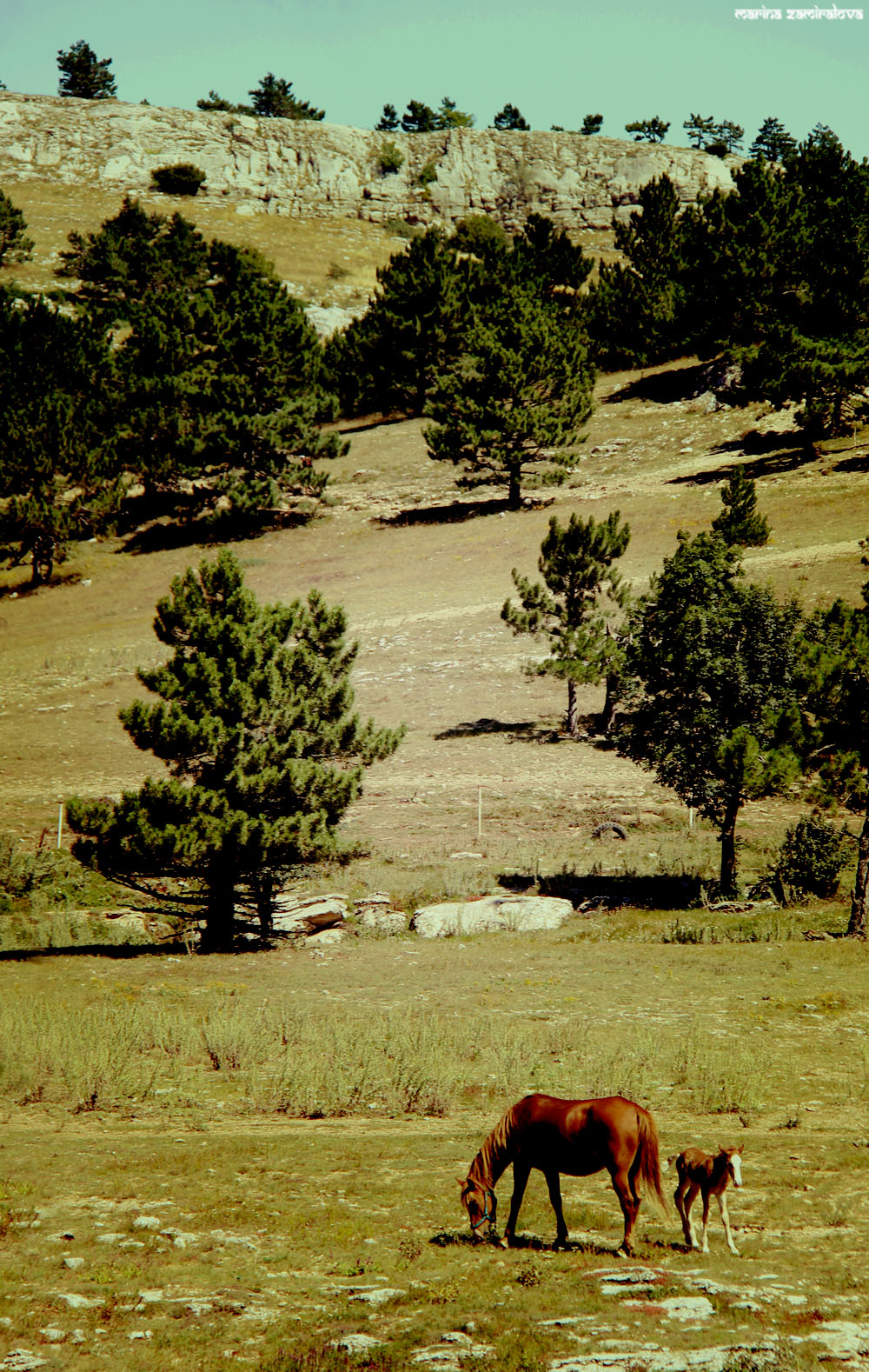 На плато Ай-Петри пасутся кони. И их хозяева, очень приставучие по поводу "хотите на лошадке покататься?"