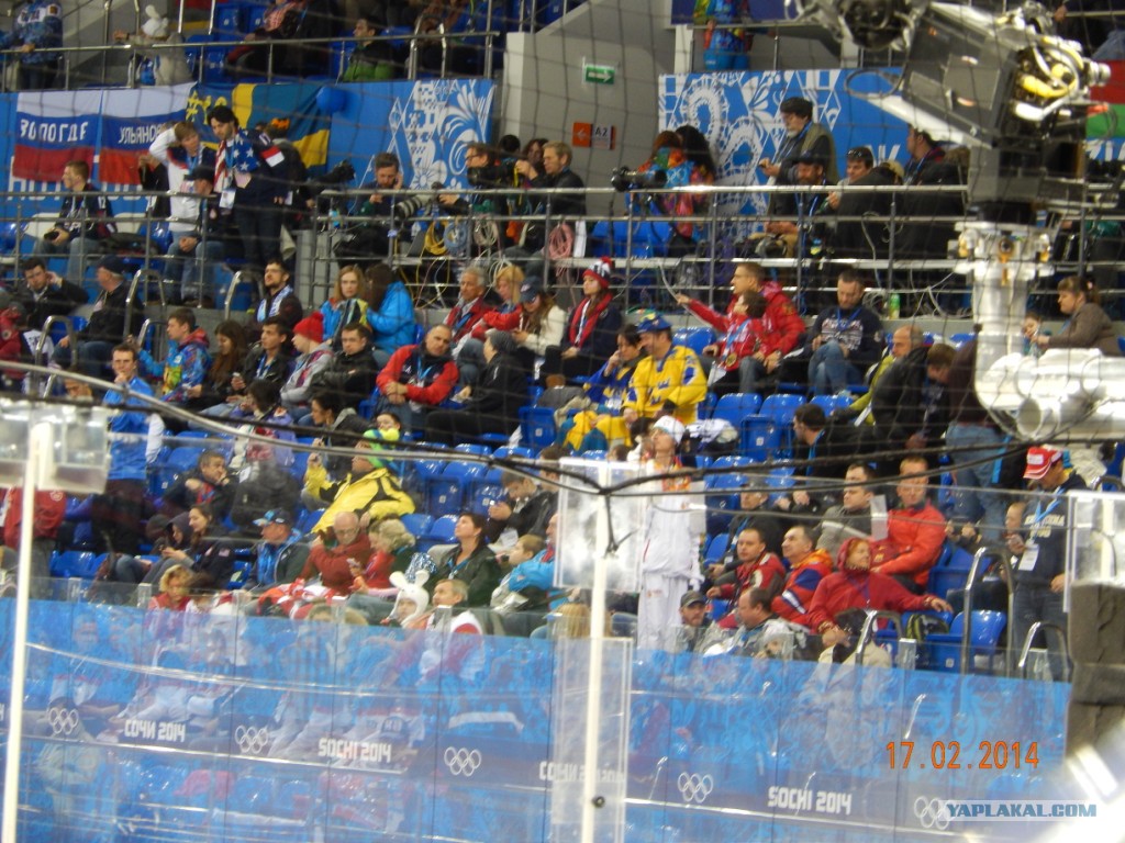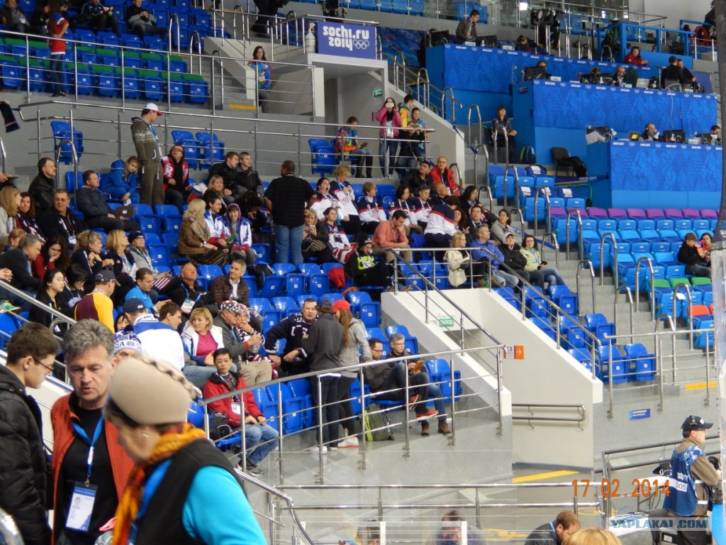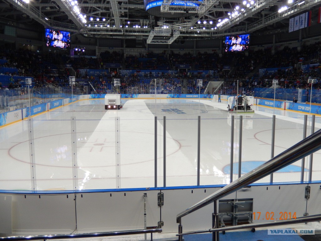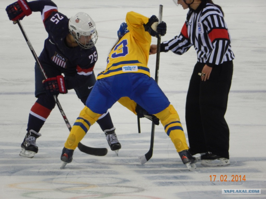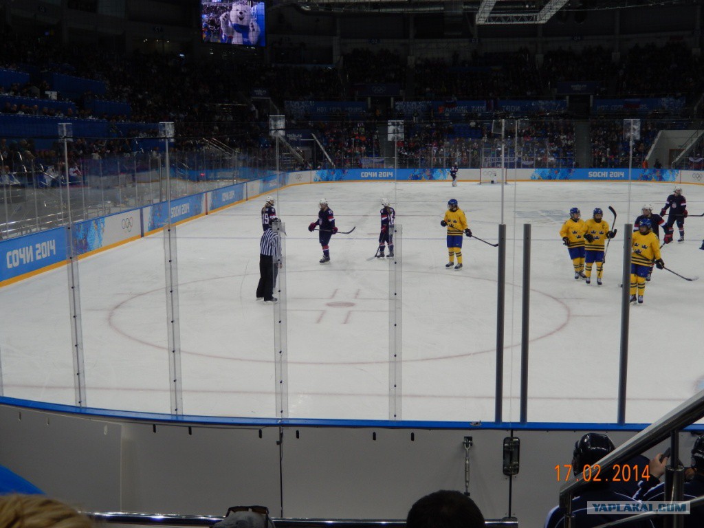 30. Так как билеты мы покупали на месте, то выбирать то особенно было не из чего. Но хокей входил в обязательную программу. В итоге пришлось идти на женский матч США-Швеция. Американки к сожалению шведок раскатали, но почти все зрители болели за шведок. Цена билетов 8000 на за двоих