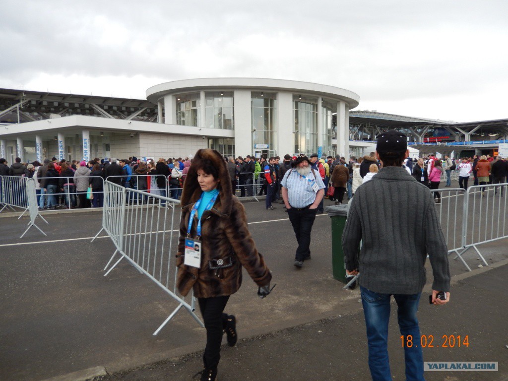 Очередь на вход ЖД вокзала олимпийского парка. Кстати забыл упомянуть, что меры безопасности очень строгие. Досматривают всех и вся. Но нас это абсолютно не напрягало