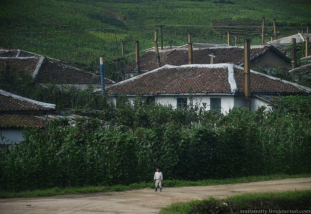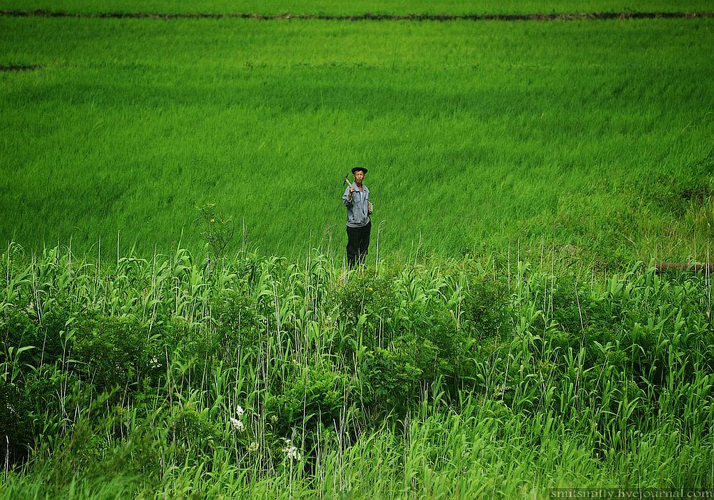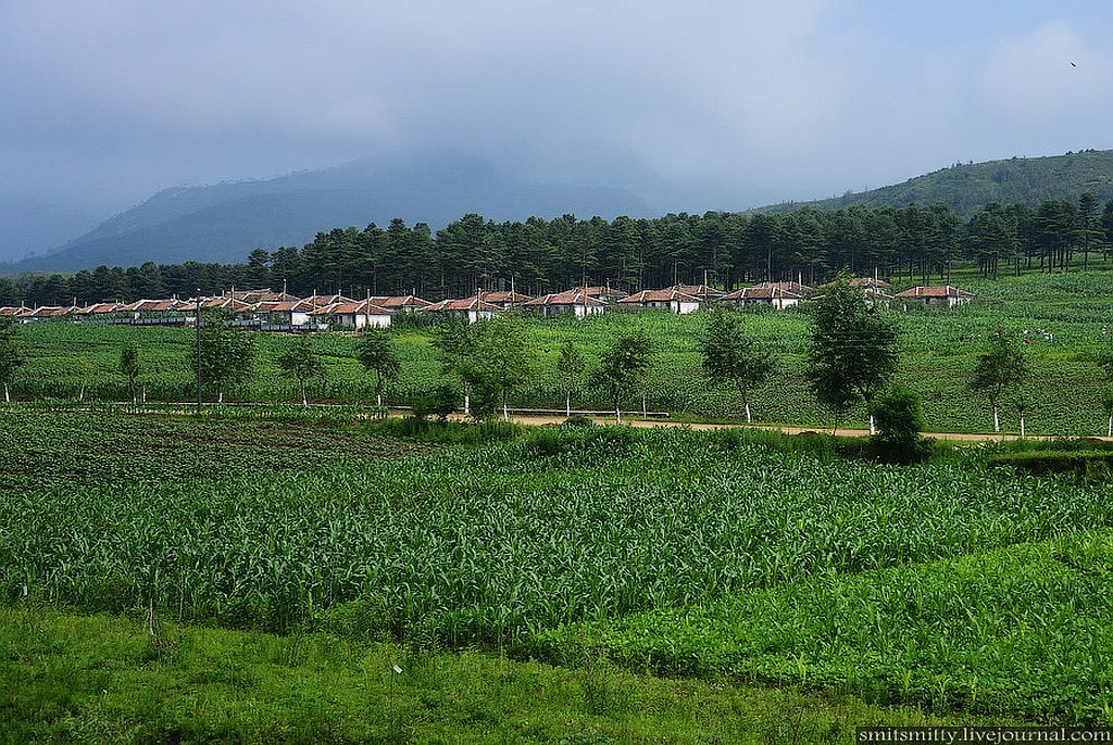 44.По дороге в город Расон снимаем пейзажики КНДР. Двойной стеклопакет вагона очень сильно разваливает и искажает картинку.