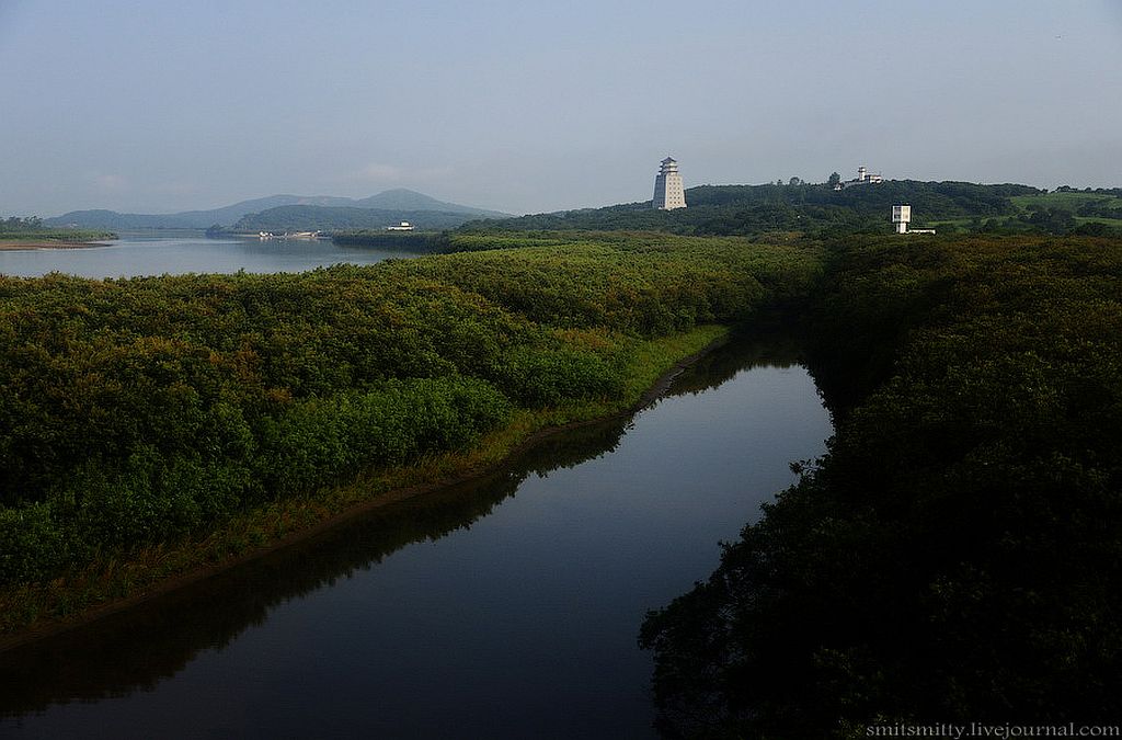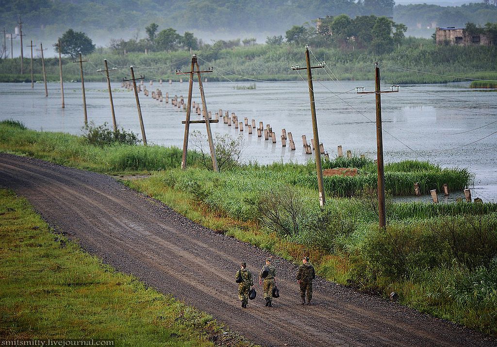 43.На границе. Надписи государств почему-то расположены неправильно- слева уже КНДР, а справа РФ