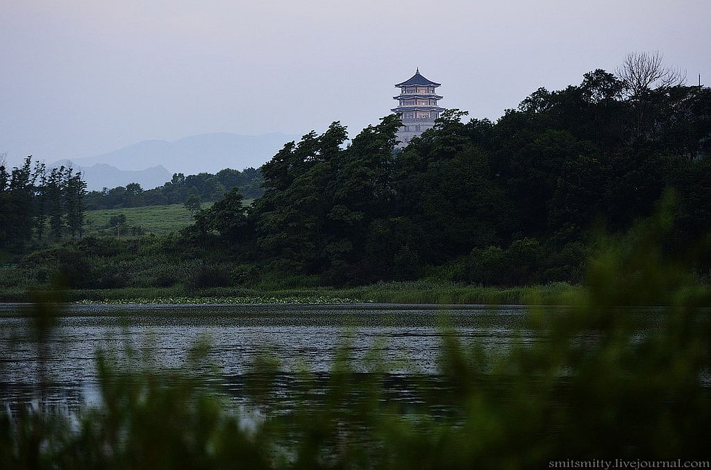Граница трех государств - КНР, КНДР и России. Эта башня находится на территории китайского города Хуньчунь.