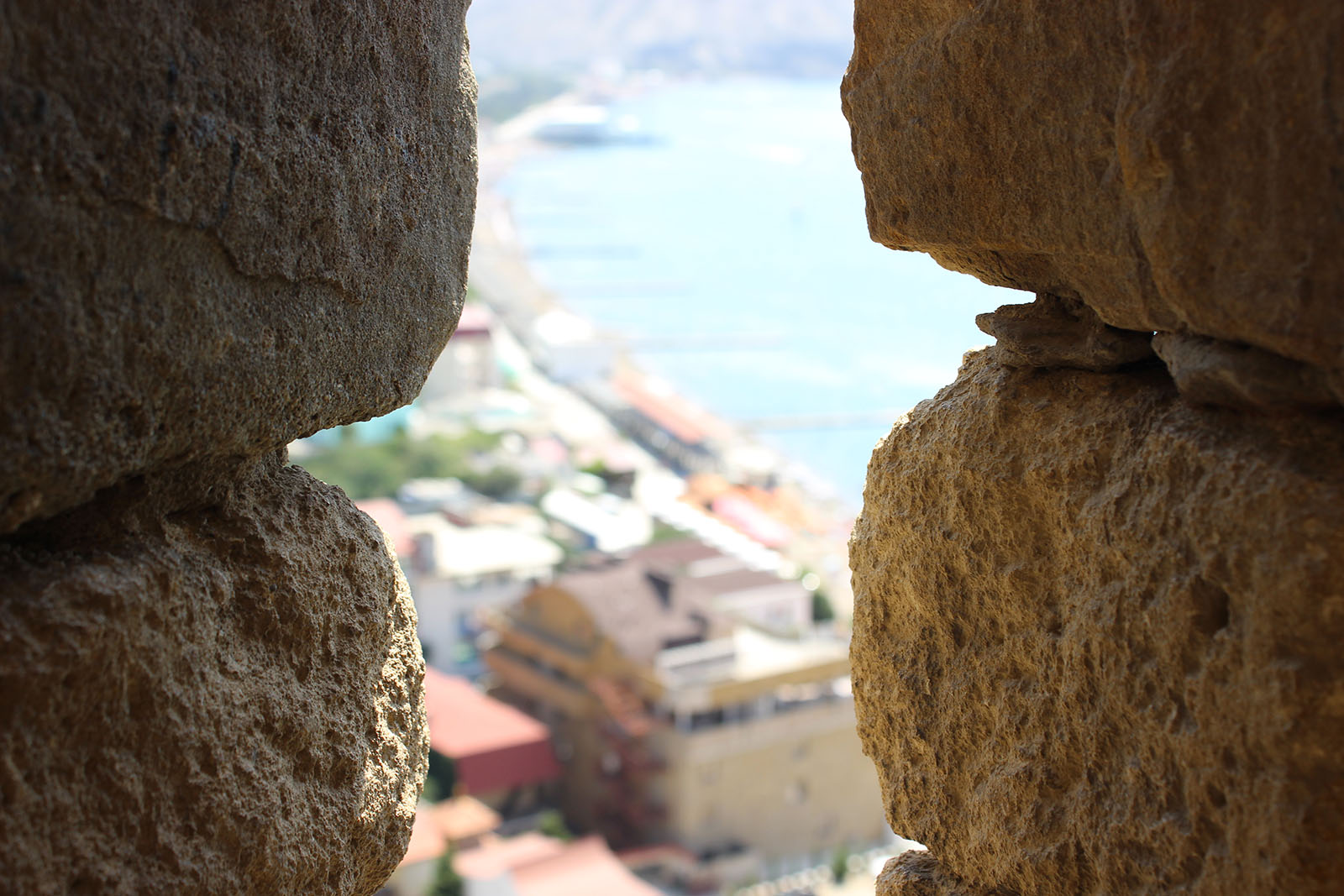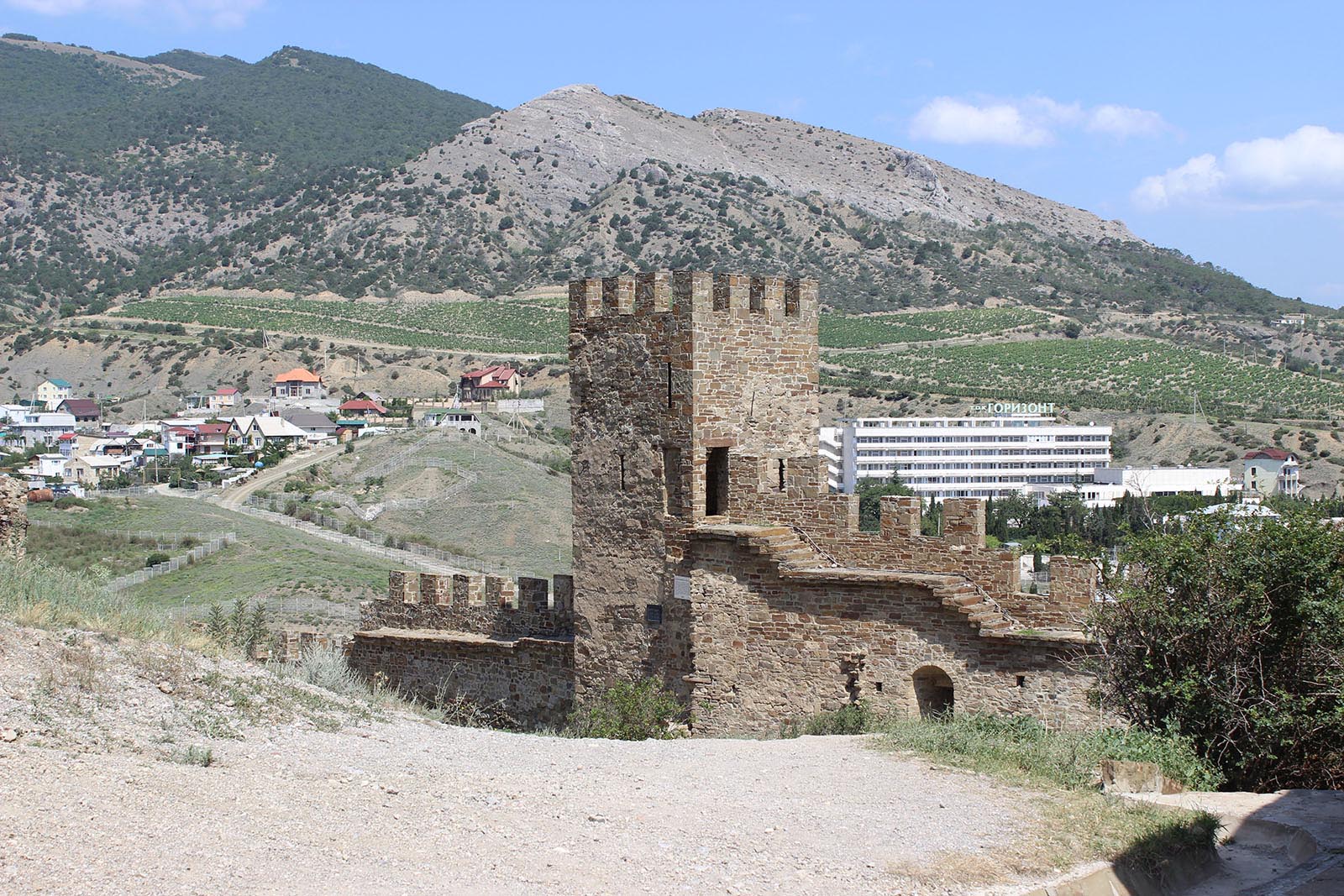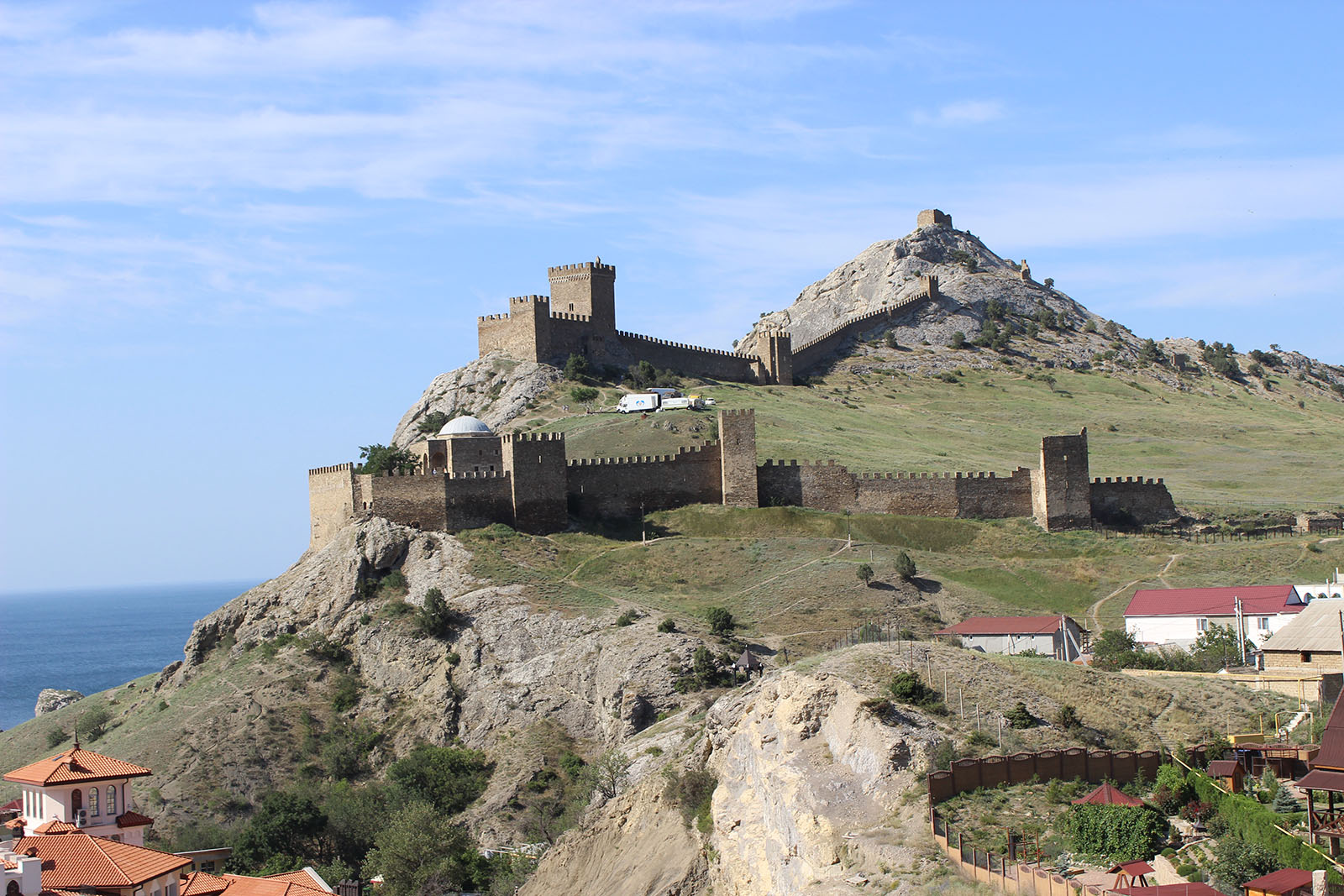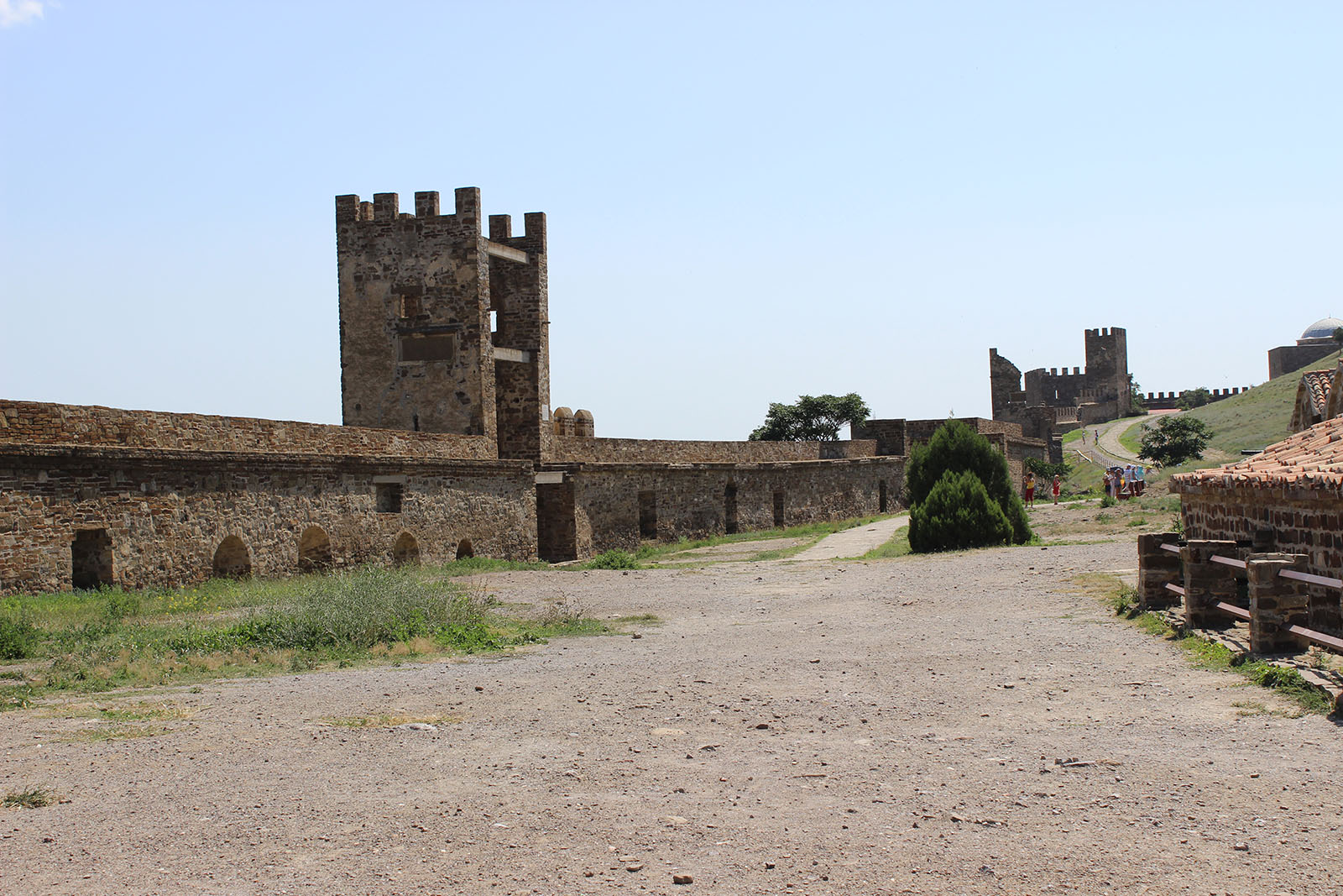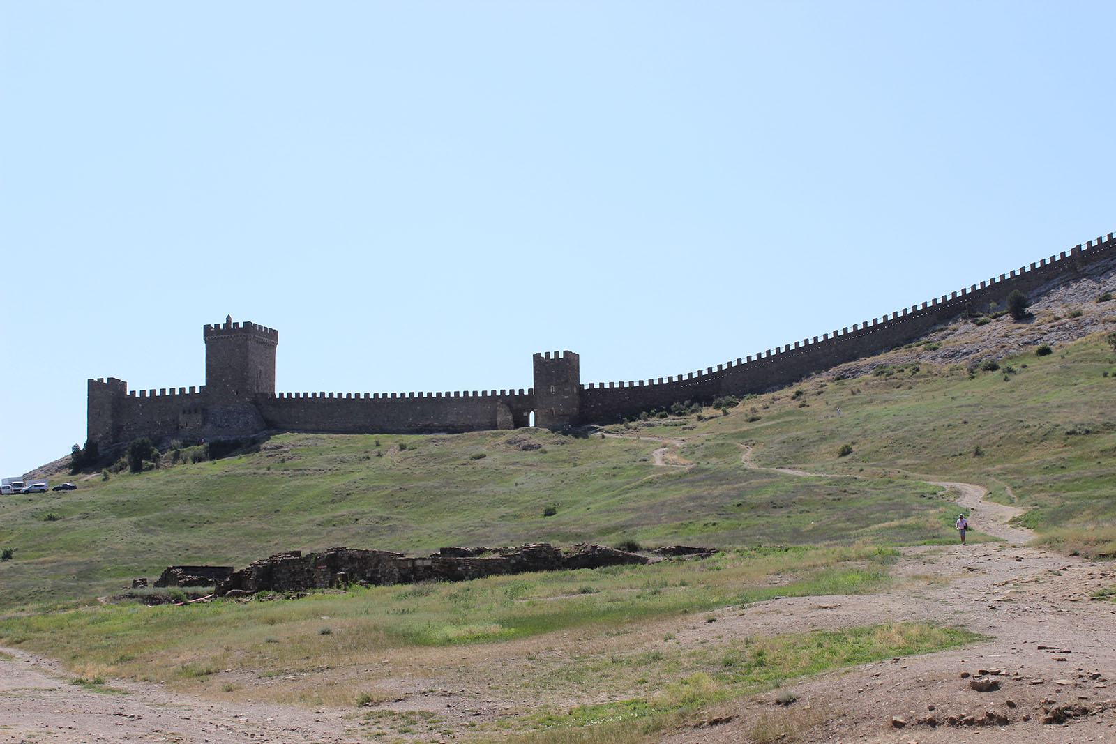 На следующий день идём покорять Генуэзскую крепость. Фургоны на фото – киносъемочная группа. Снимают фильм «Сын Ворона».
