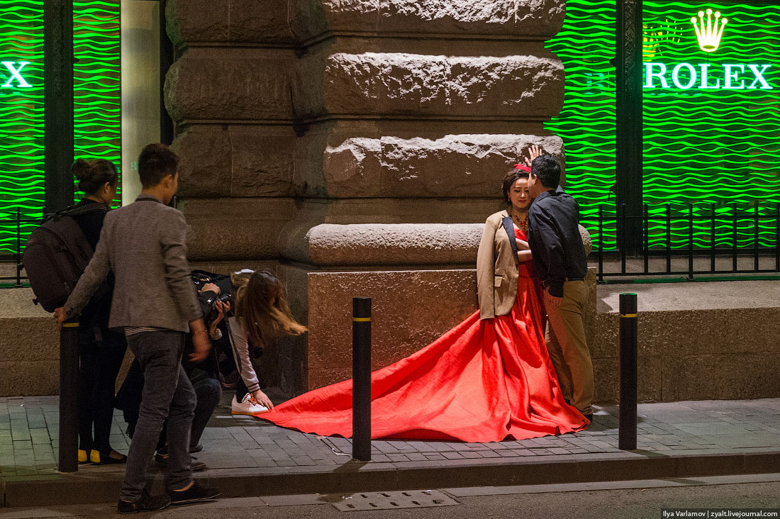 За что люблю Шанхай - так это за контрасты. Кто-то снимается для свадебного альбома на фоне витрины магазина Ролекс...