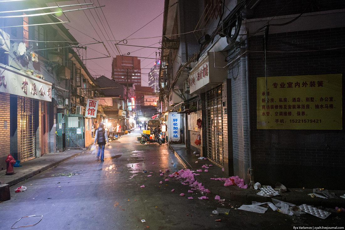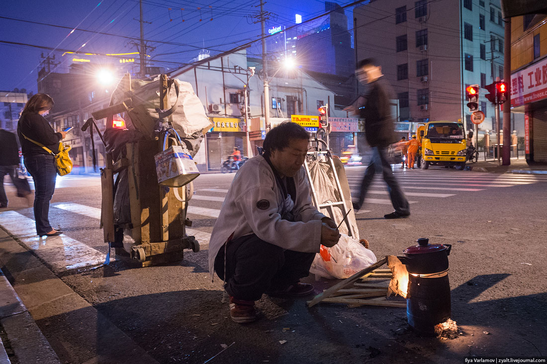 За углом баба в пижаме выкидывает мусор на перекресток. И это тоже Шанхай.