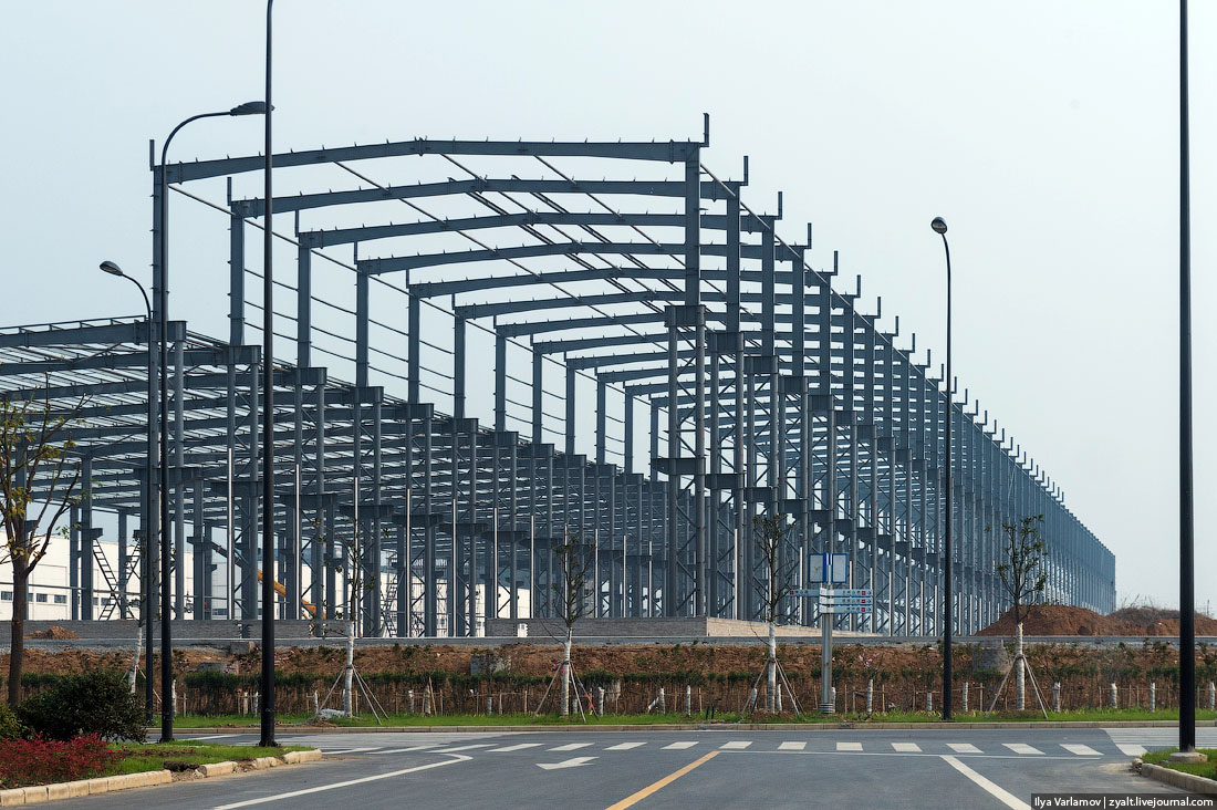 Повсюду строятся новые заводы. Вообще удивительно ехать 40 минут по широченной, утопающей в цветущих деревьях дороге, вокруг которой нескончаемые фабрики и заводы.