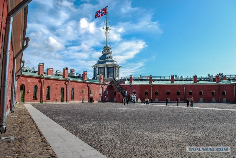 Стены Петропавловской крепости присмотритесь на них отчётливо видно уровень затопления города он почти по окна.
